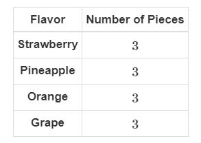 Zoe's bag of fruit snacks contains 12 pieces. The table shows the flavors of the fruit snacks in the bags.