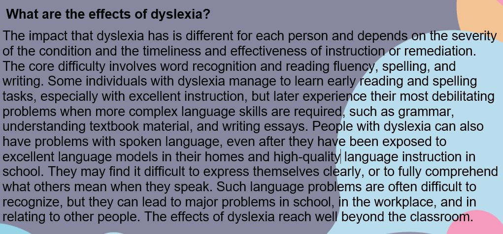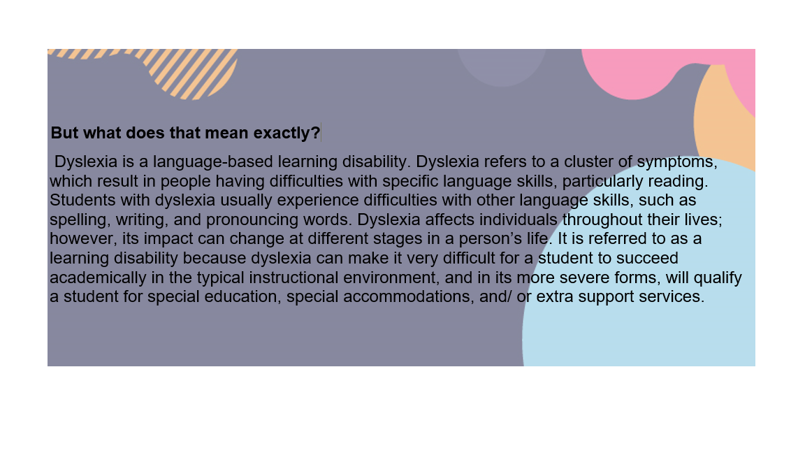 Students who experience problems with the skills related to dyslexia are dyslexic.