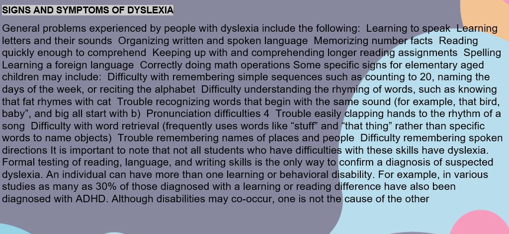 If dyslexia is identified and treated early, children with this disorder are more likely to learn to overcome their difficulties while maintaining a positive self-image. Even though children with dyslexia do not outgrow their disability, they can learn to adapt and improve their weak skills. With proper remediation and needed accommodations, students with dyslexia can go on to be very successful students in colleges and universities, as well as in professional and adult life.