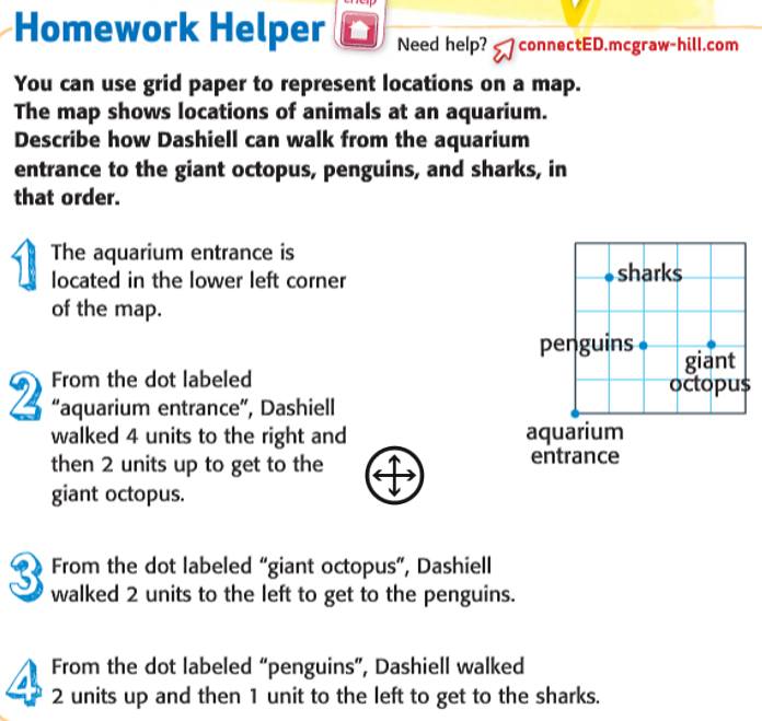 Sample Answer: 3 units west, 1 unit south