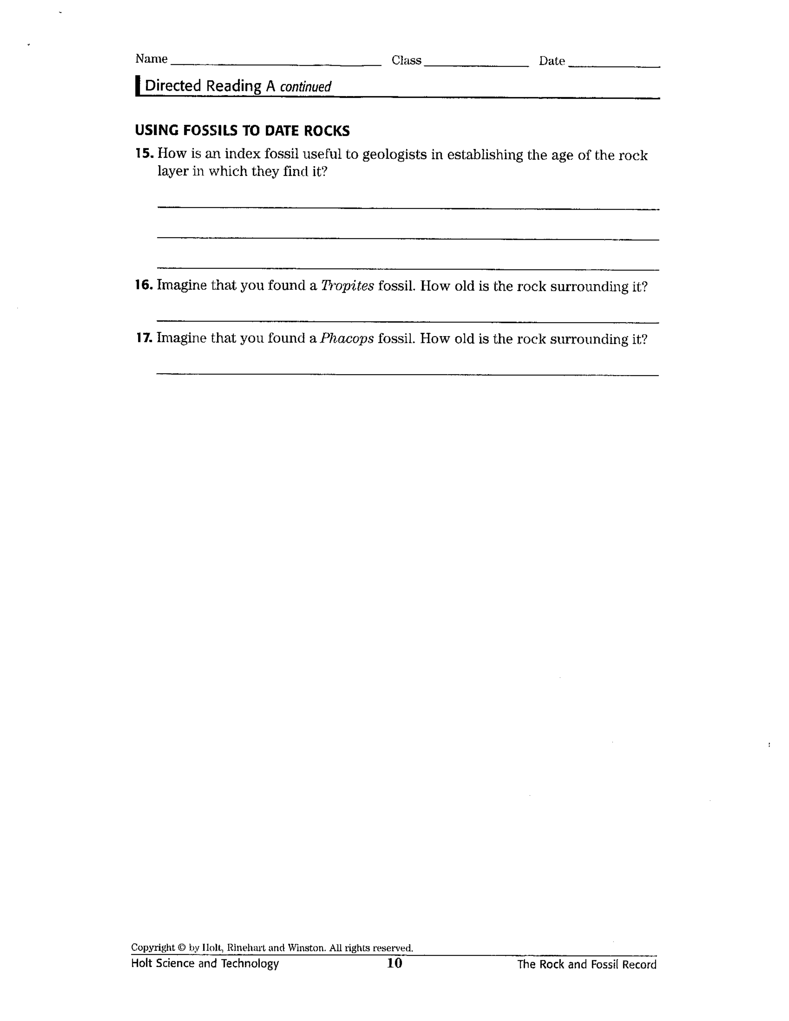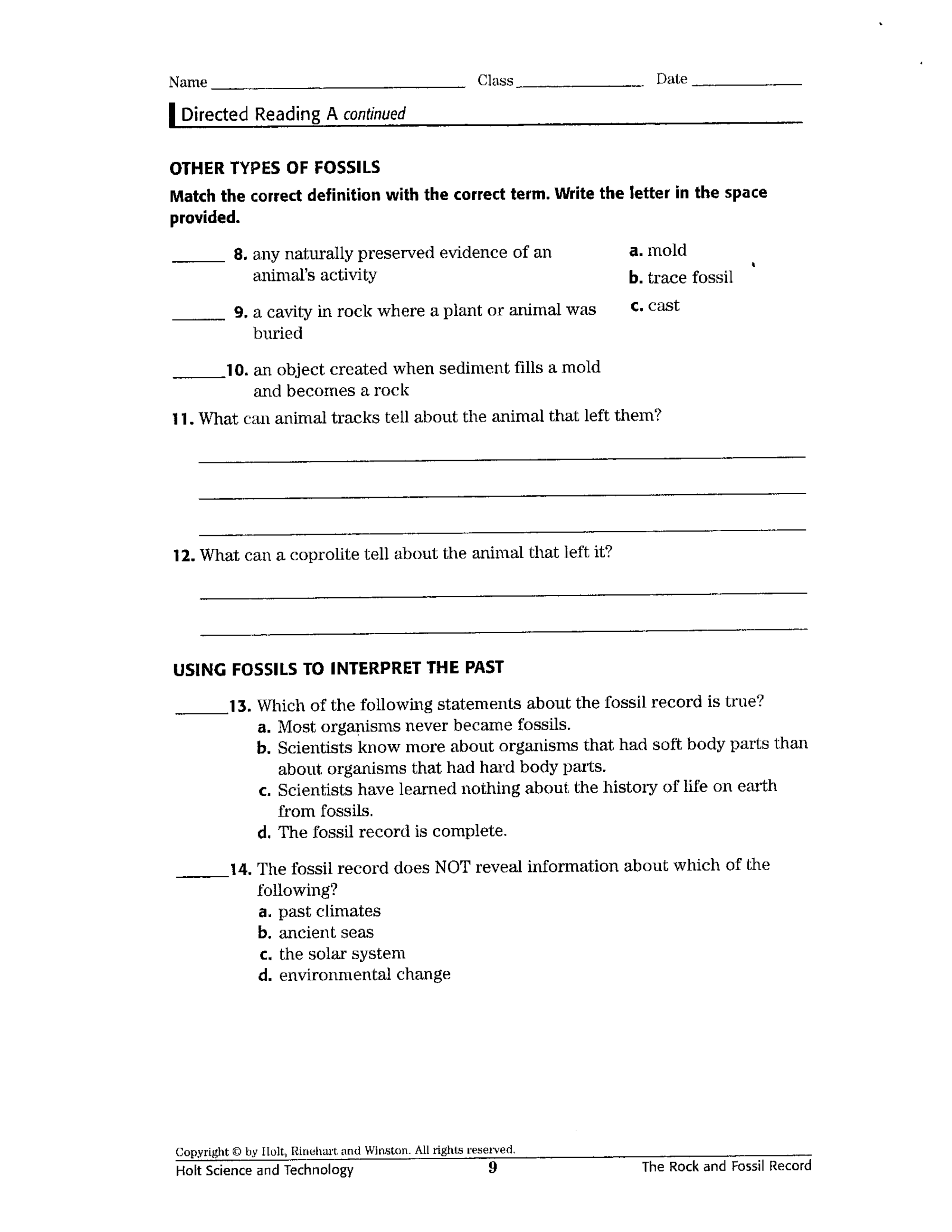 Looking at Fossils Worksheet