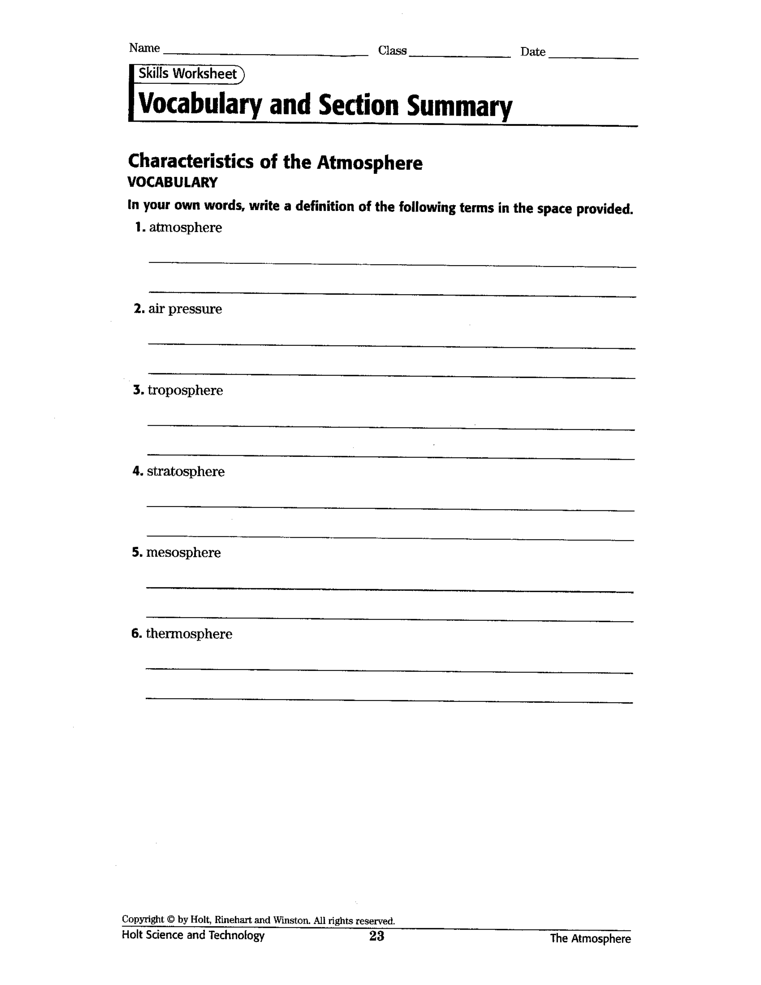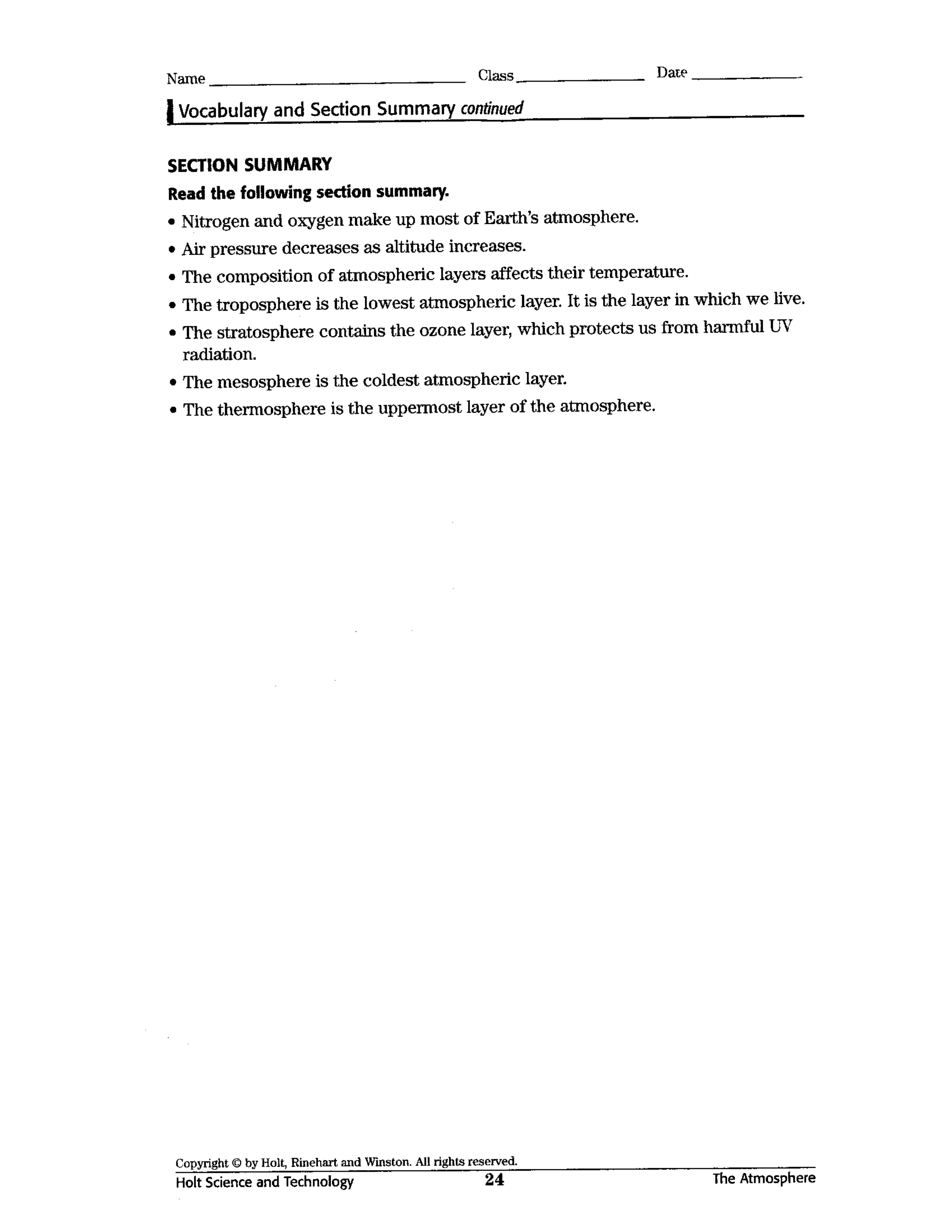 Characteristics of the Atmosphere Vocabulary & Section Summary