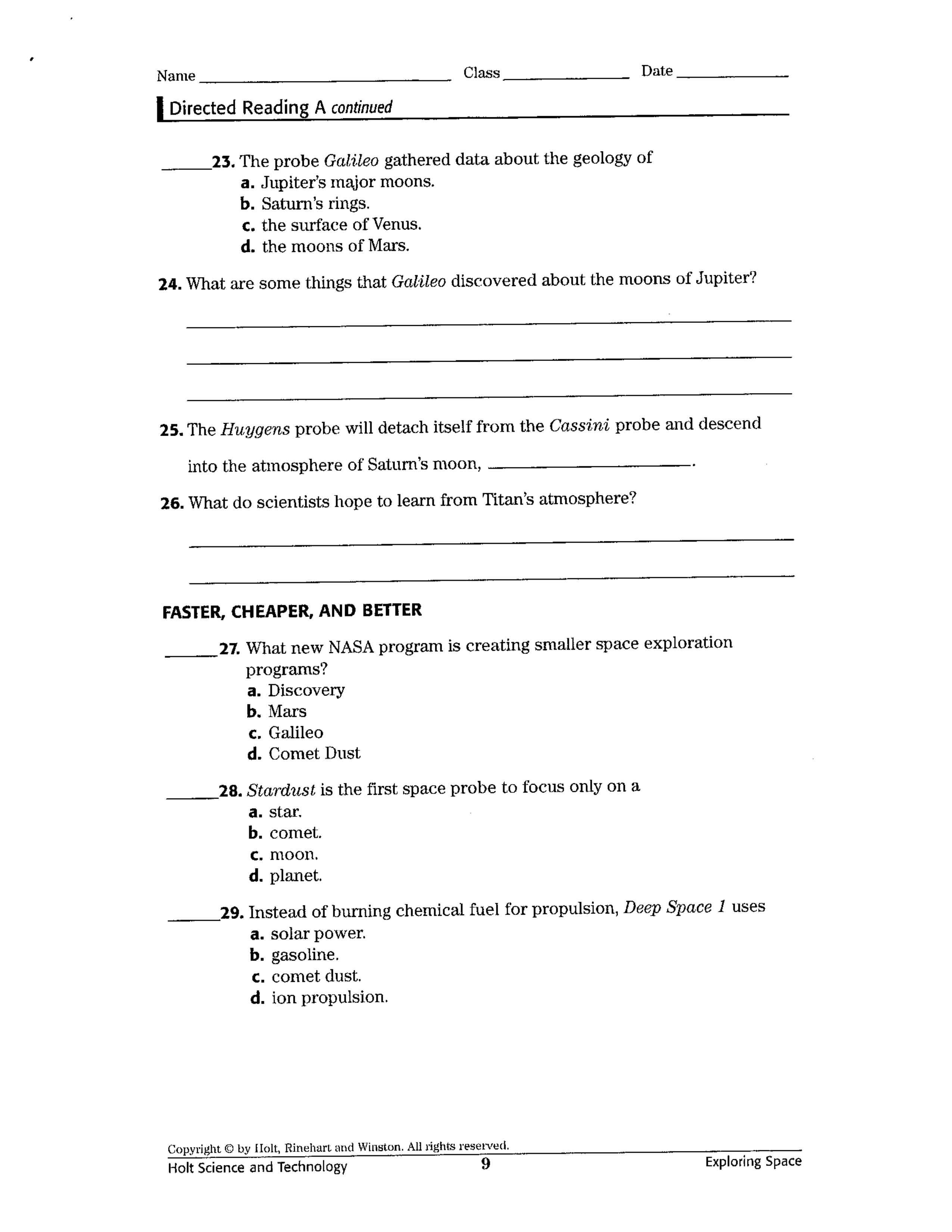 Space Probes Worksheet