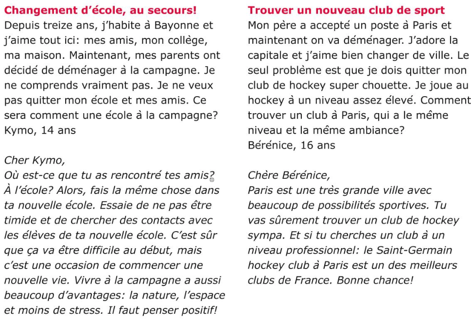 Tip: het eerste advies vind je in het tekstgedeelte "Il y a ... ensemble." Het tweede advies vind je in het tekstgedeelte "En plus ... spéciale."