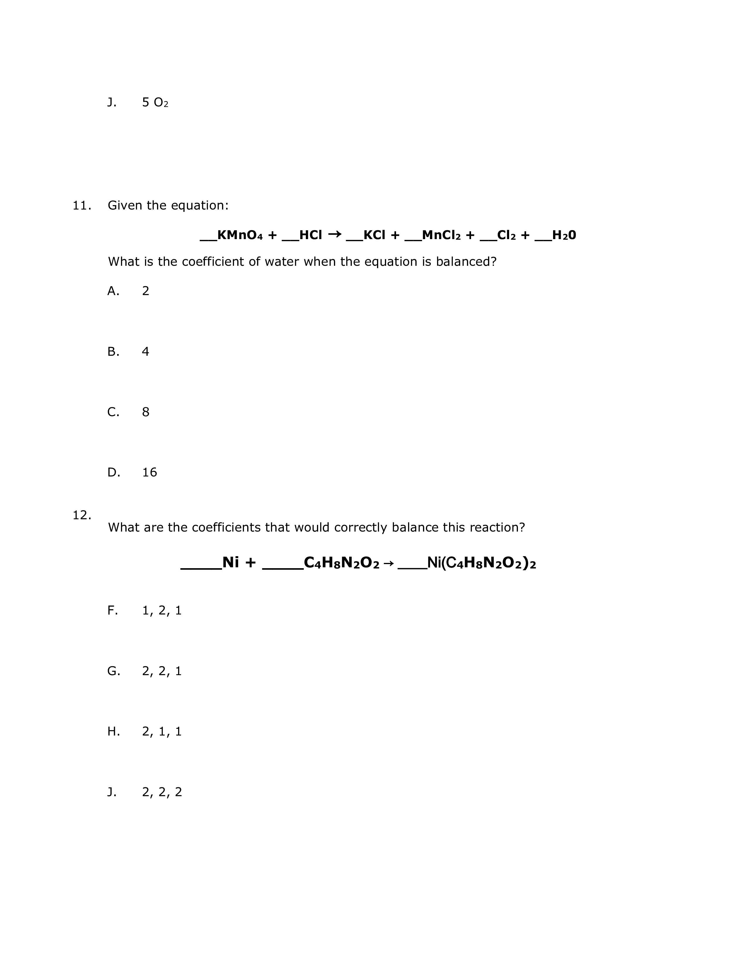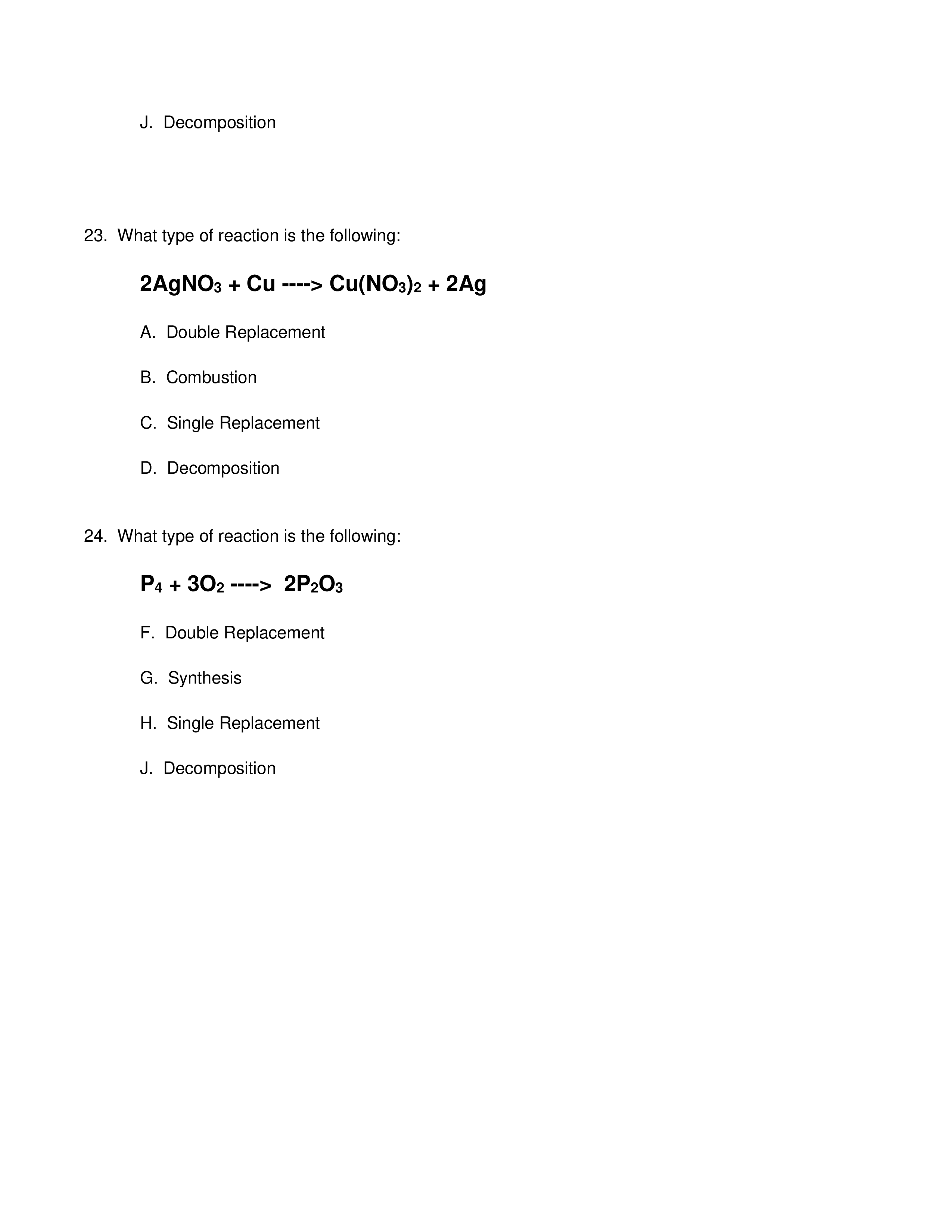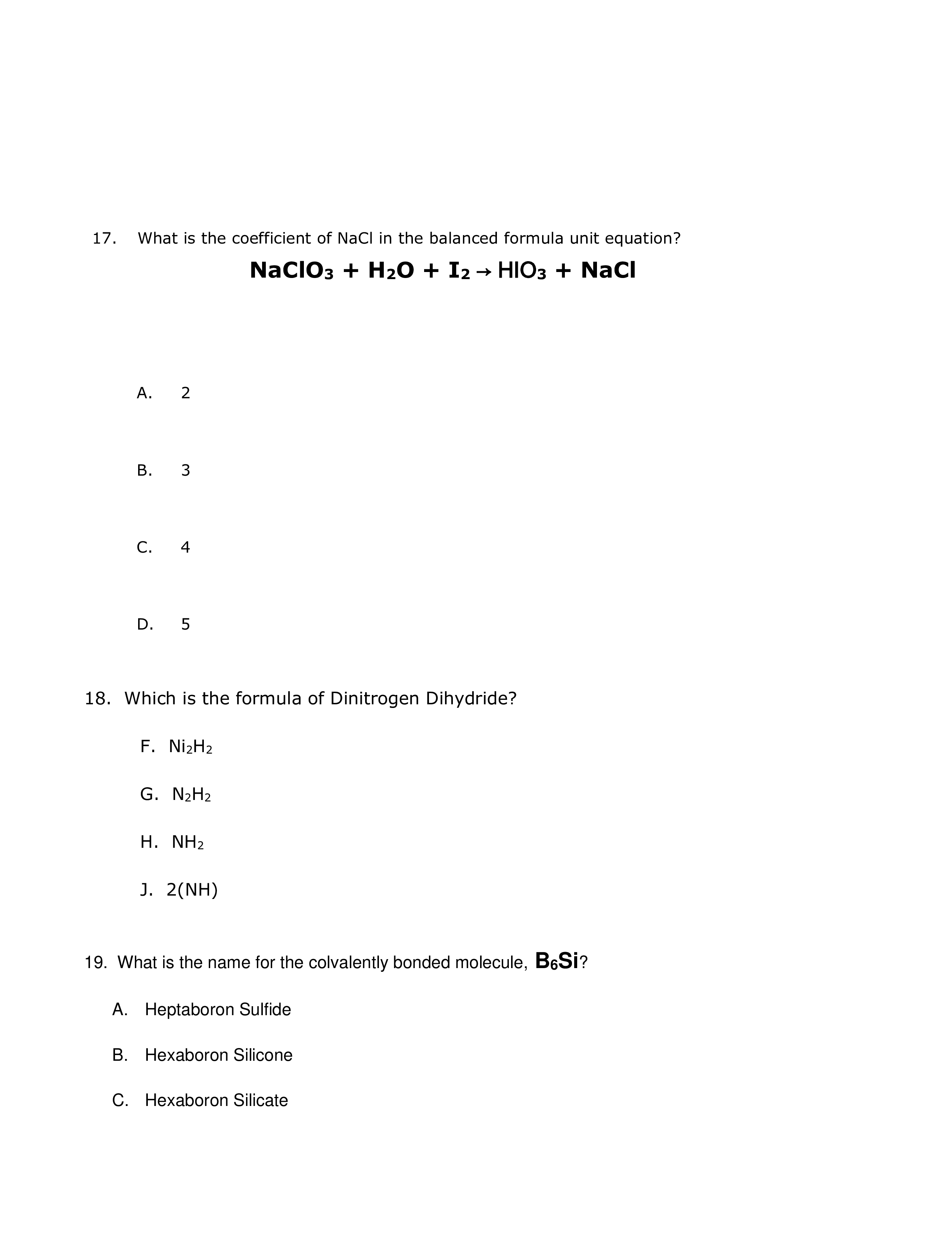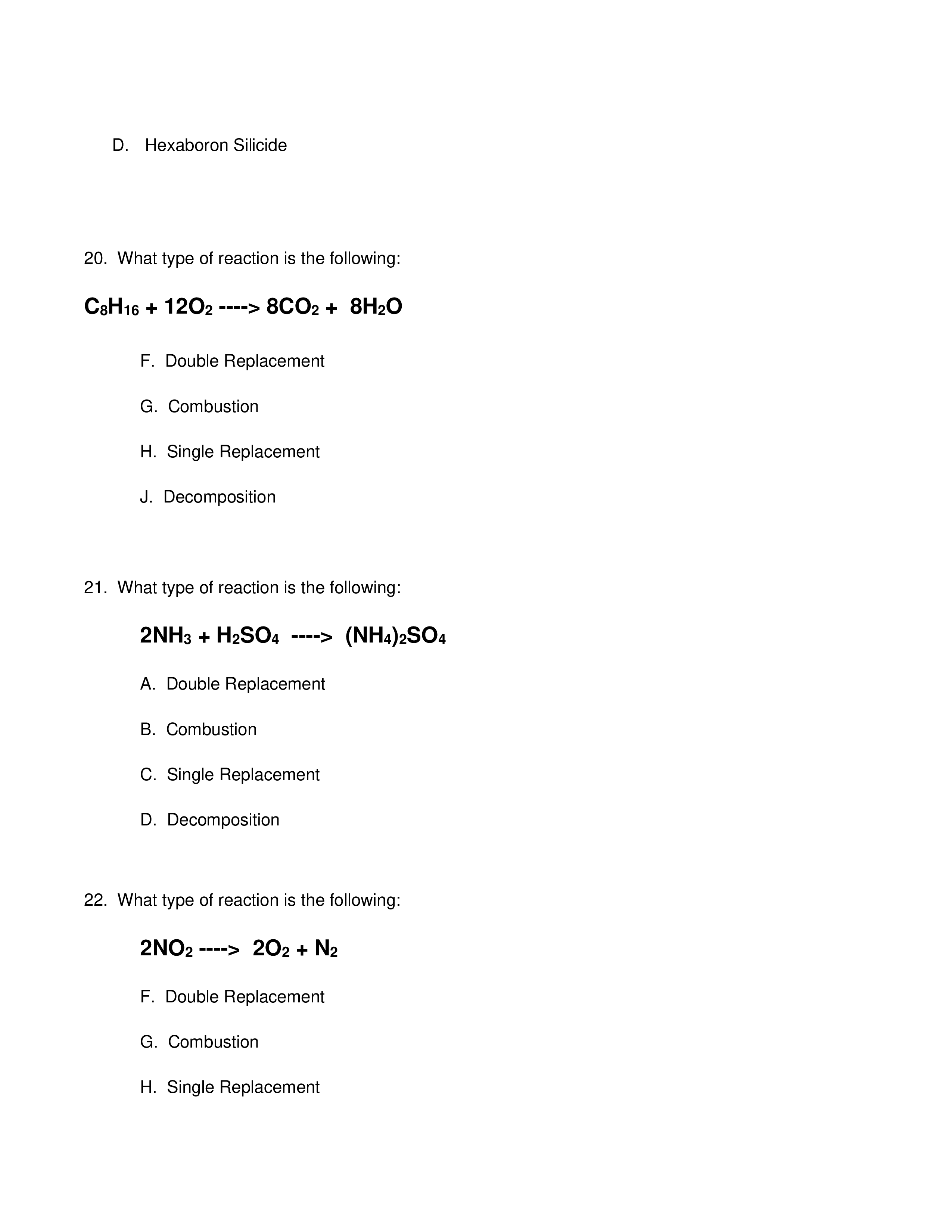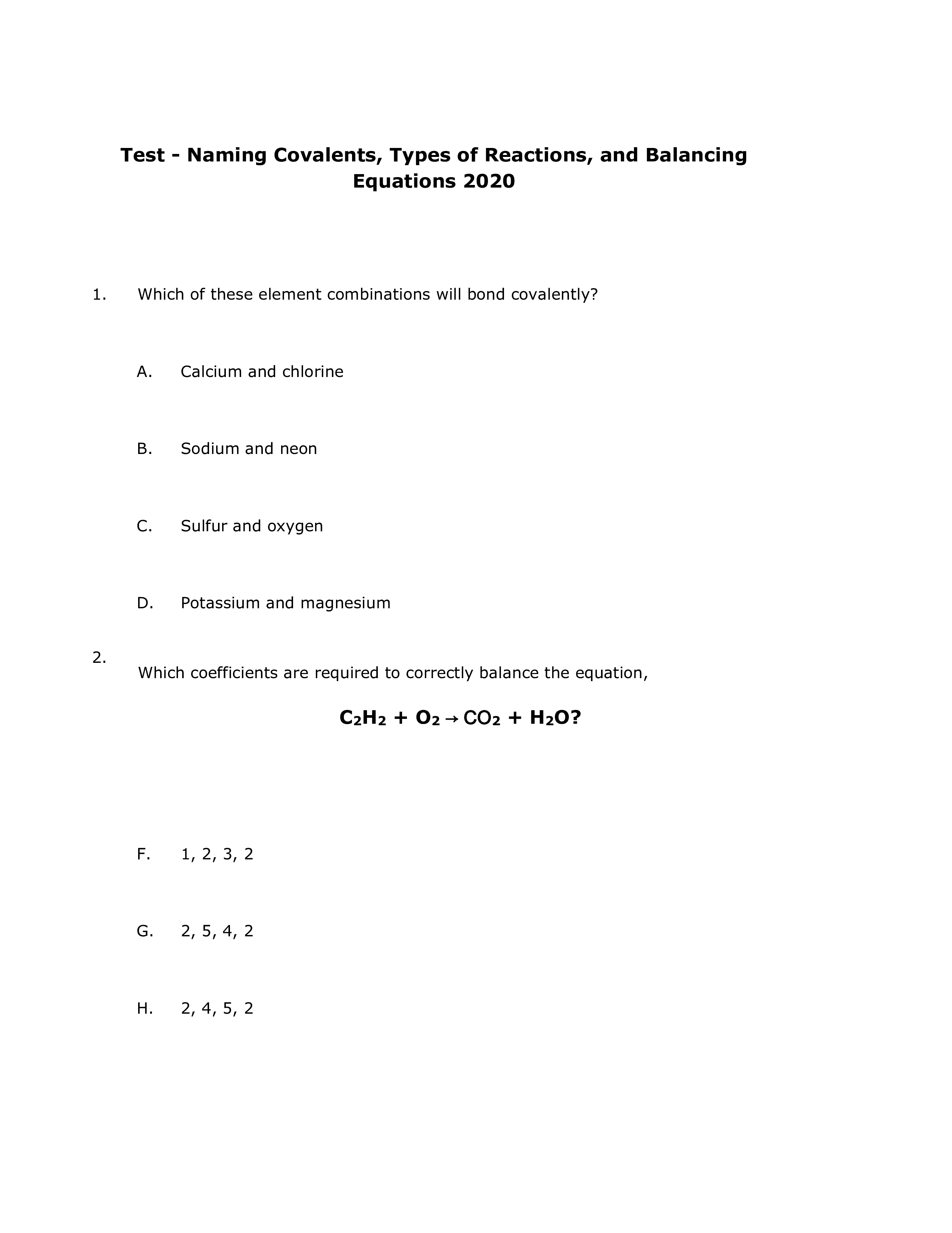 Naming Covalents, Reaction Type, Balancing TEST 2020