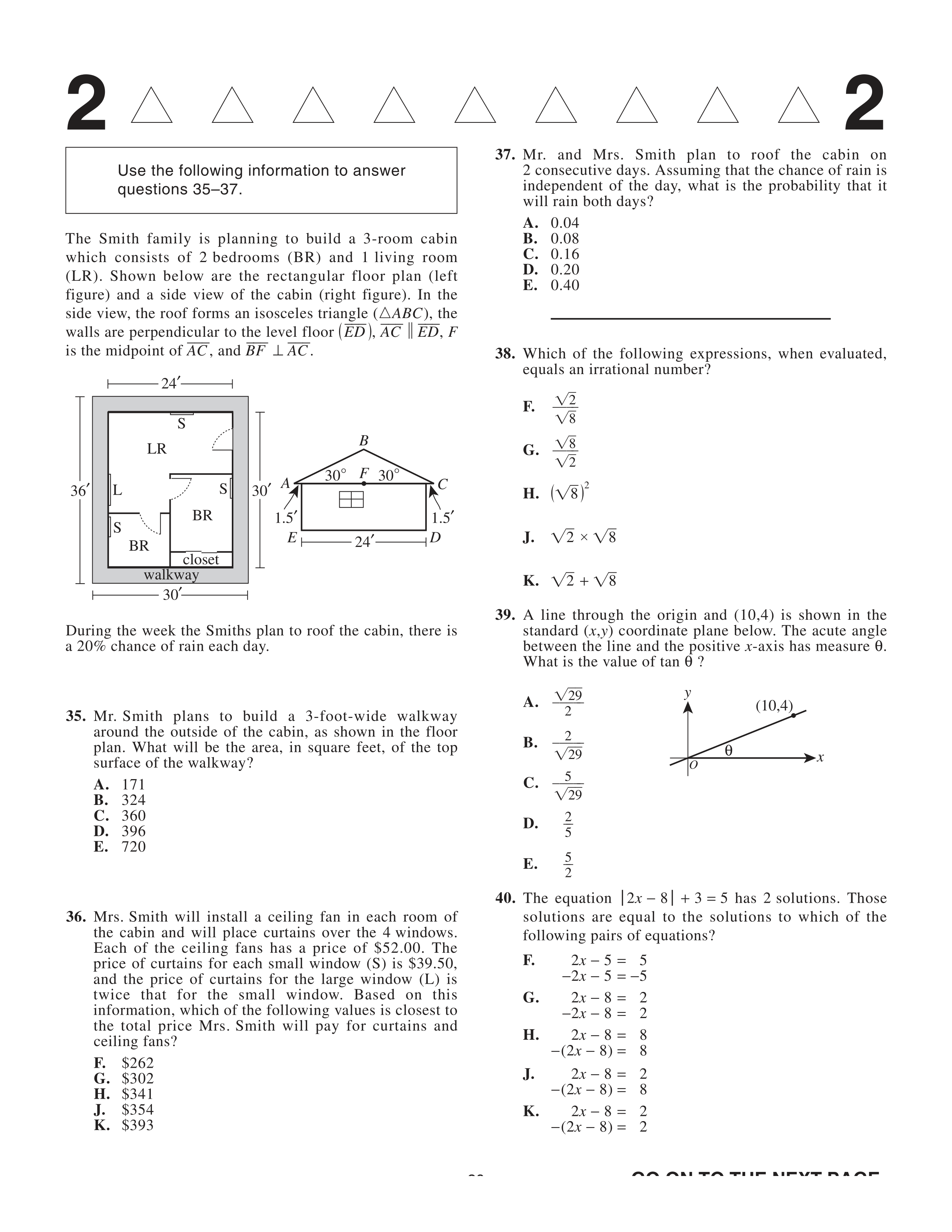 Test questions are taken from the 2019-2020 "Preparing for the ACT Test" booklet. A full answer key for the math section can be found on page 58.