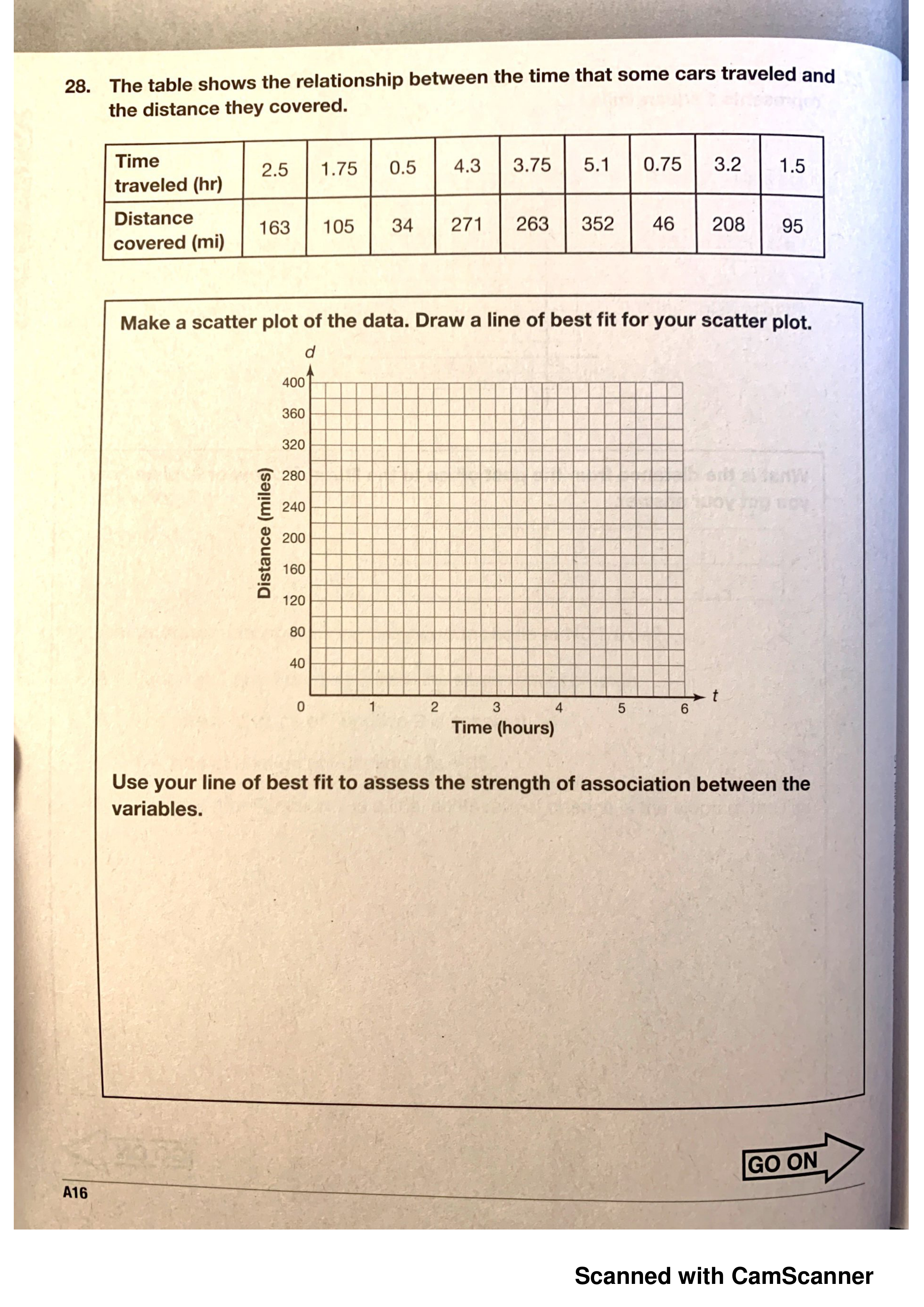 Plot the points and draw a line of best fit to assess the strength of association between the variables.