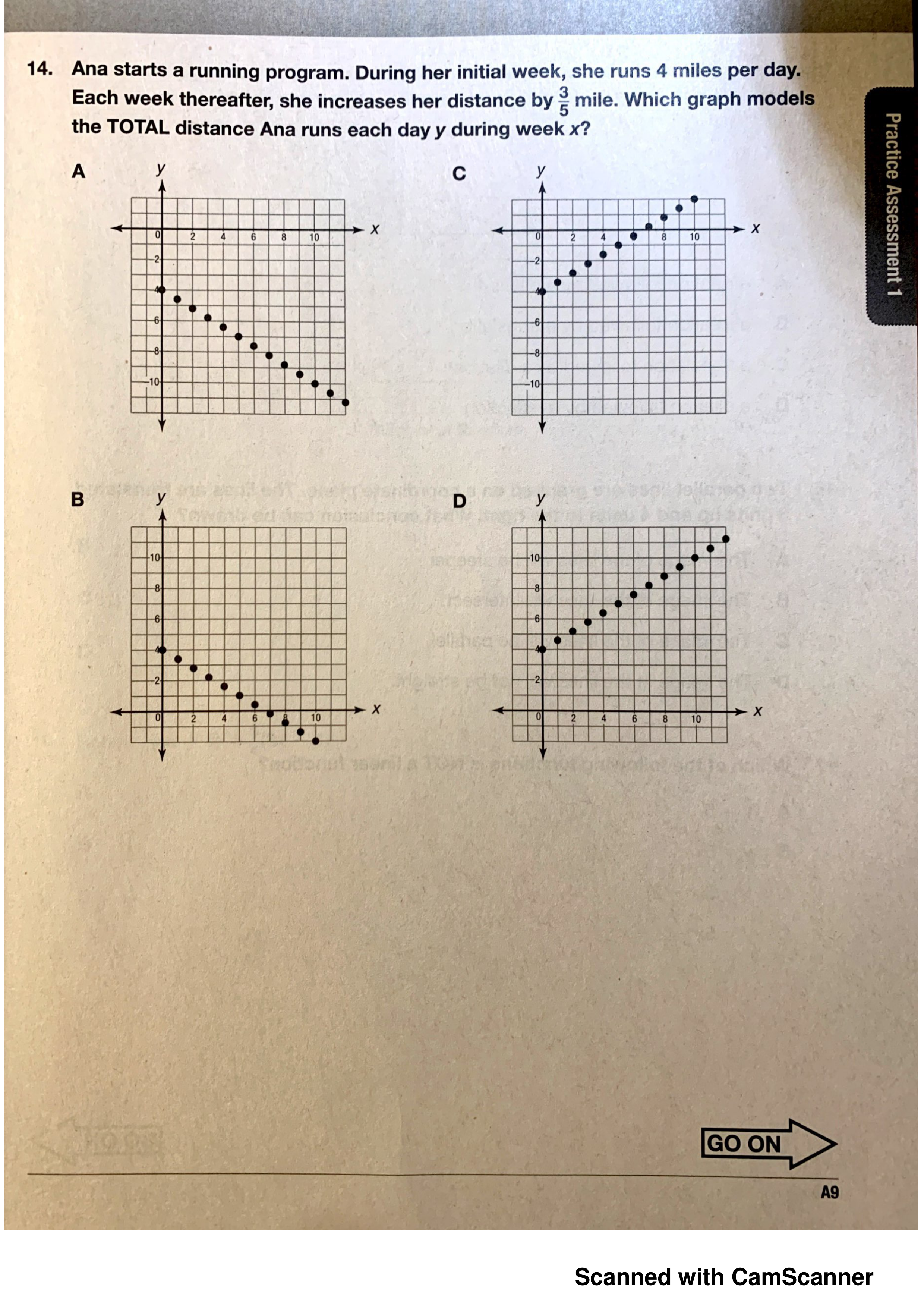 Which graph models the total distance Ana runs each day y during week x?