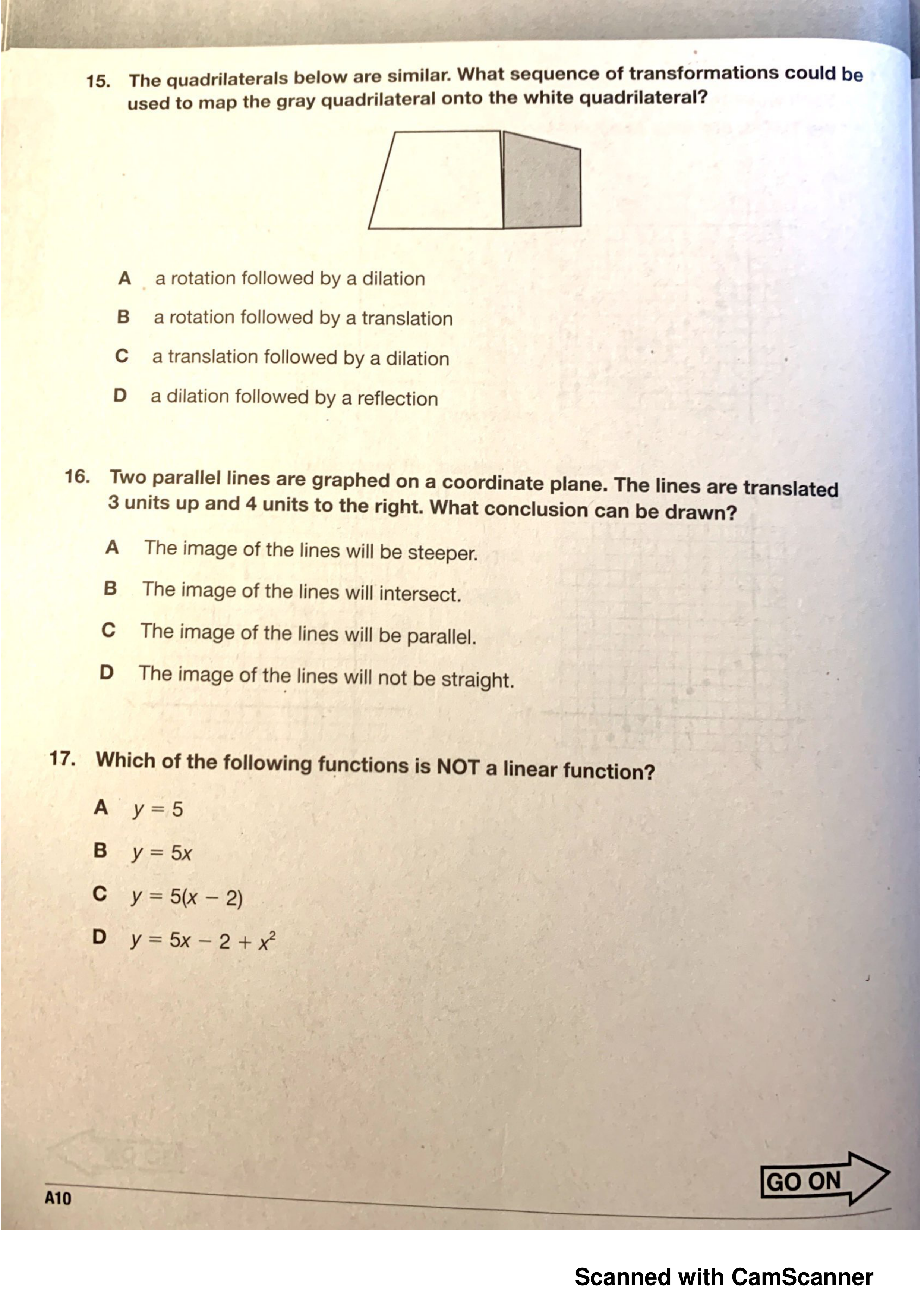 Which of the following functions is NOT a linear function?