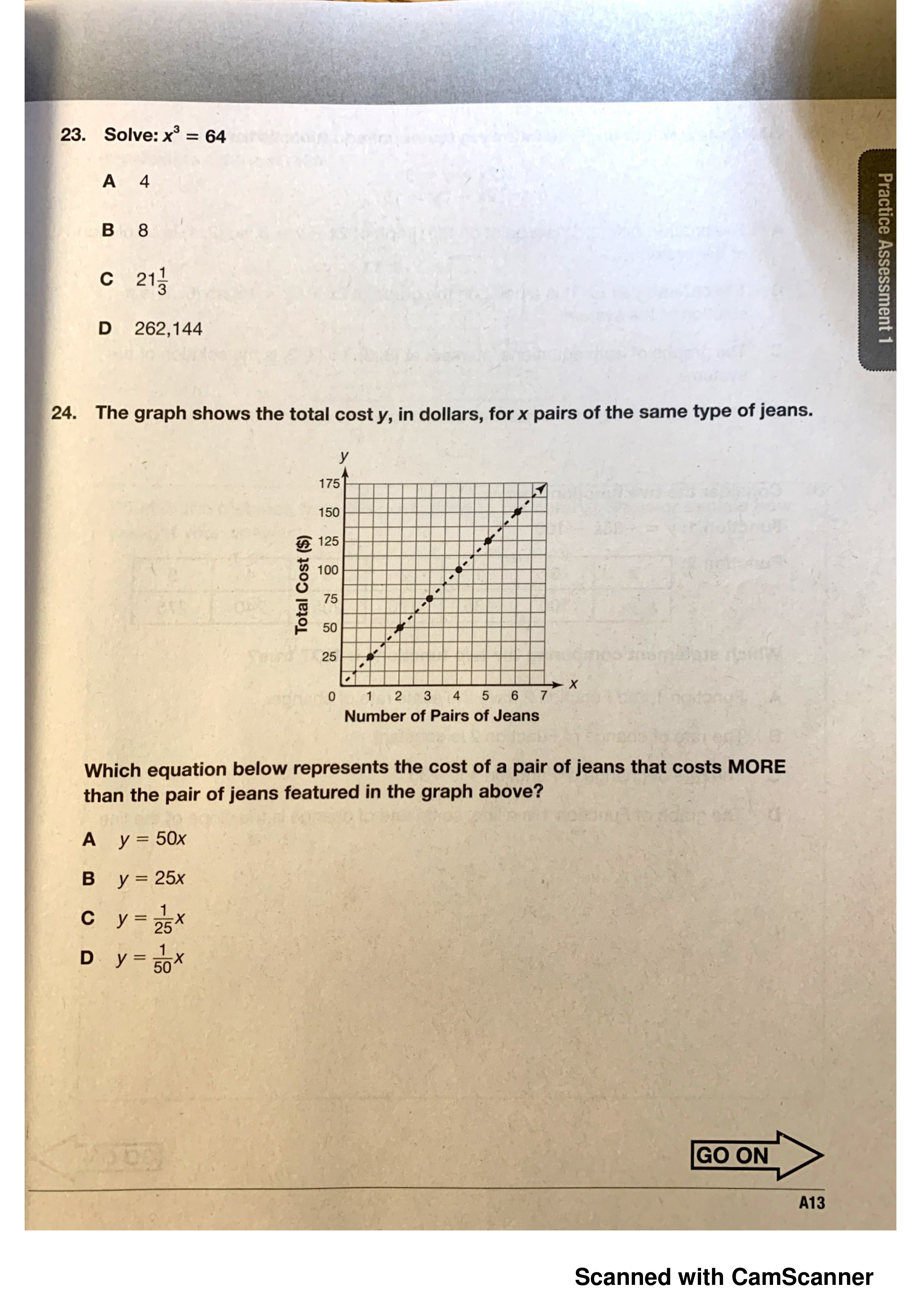 Which equation below represents the cost of a pair of jeans that costs MORE than the pair of jeans featured in the graph above?