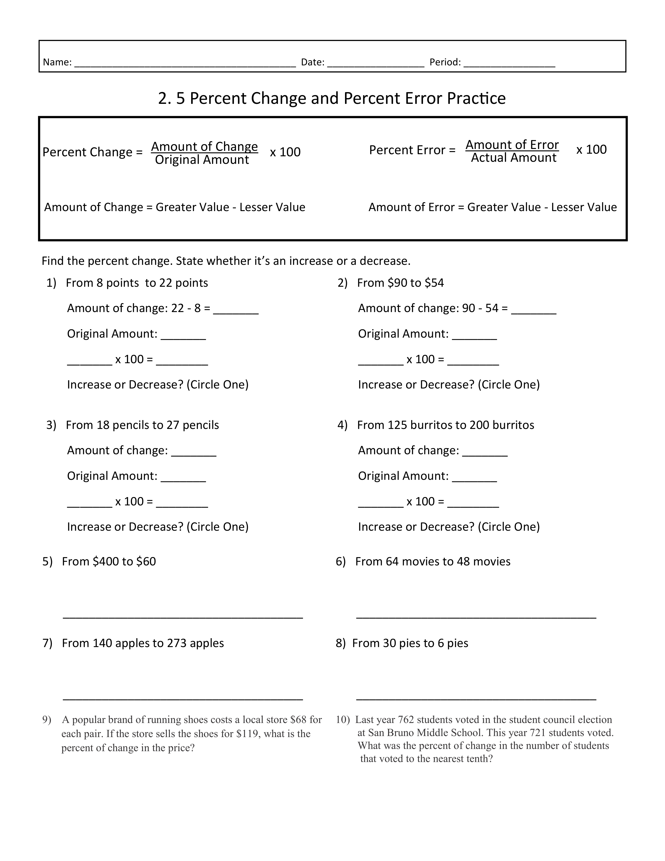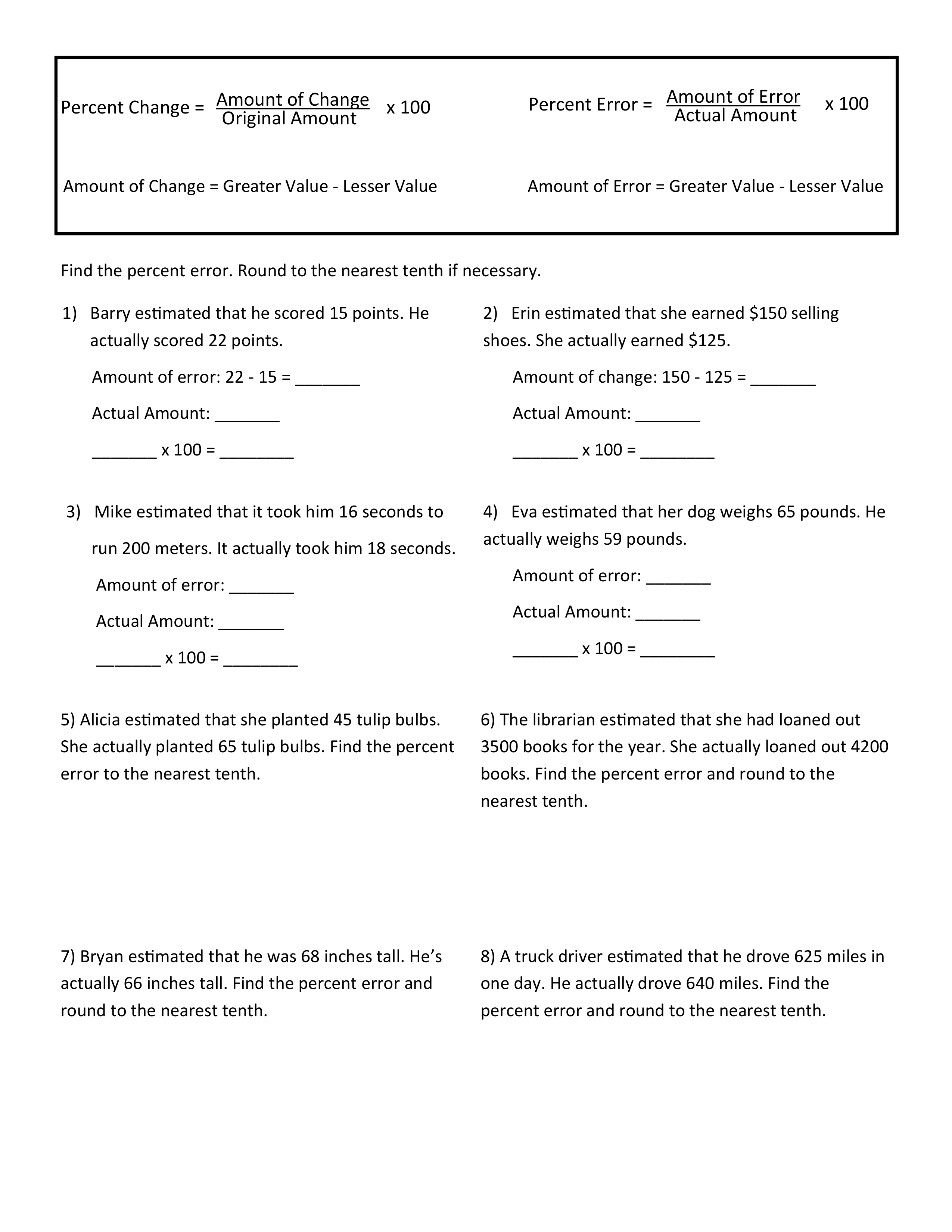Find the percent error.