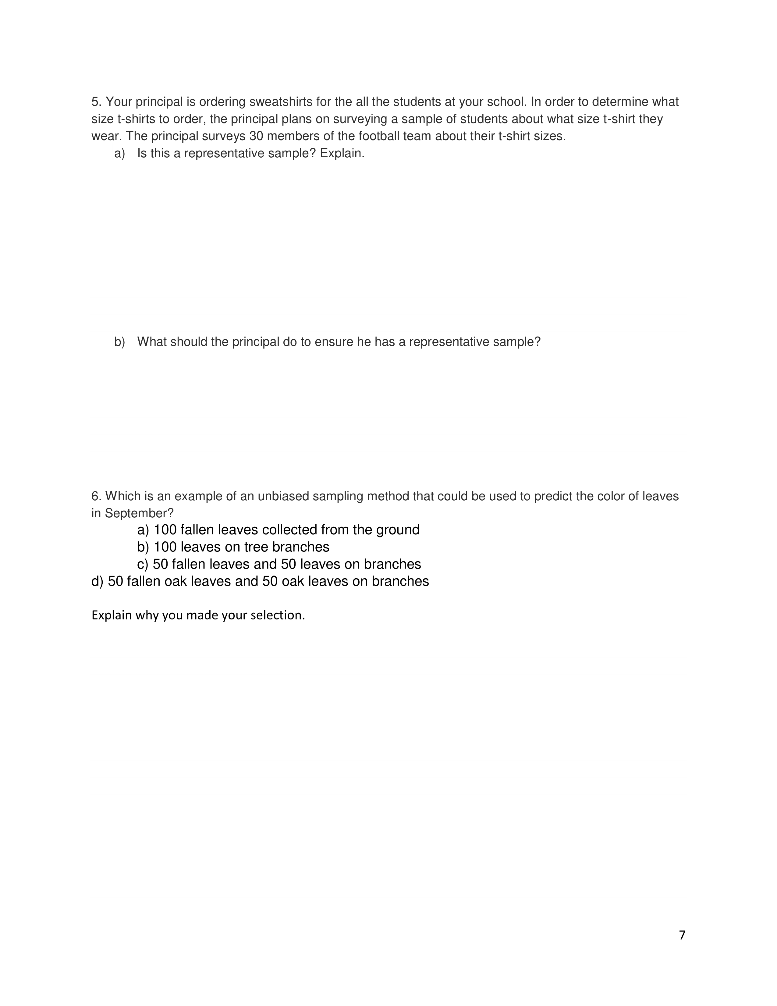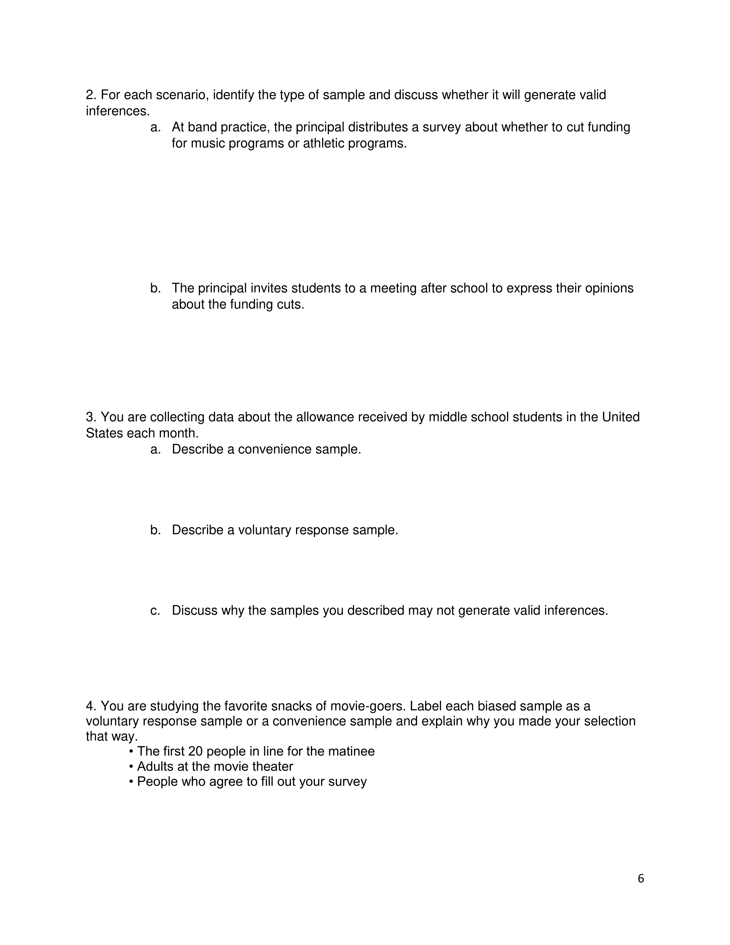 If he were to survey only students on the Class Council, for example, it might be hard to make claims about what all students think. Students who are on the Class Council may not have the same social interests as other students. Consider this idea as you think about the samples described below.
