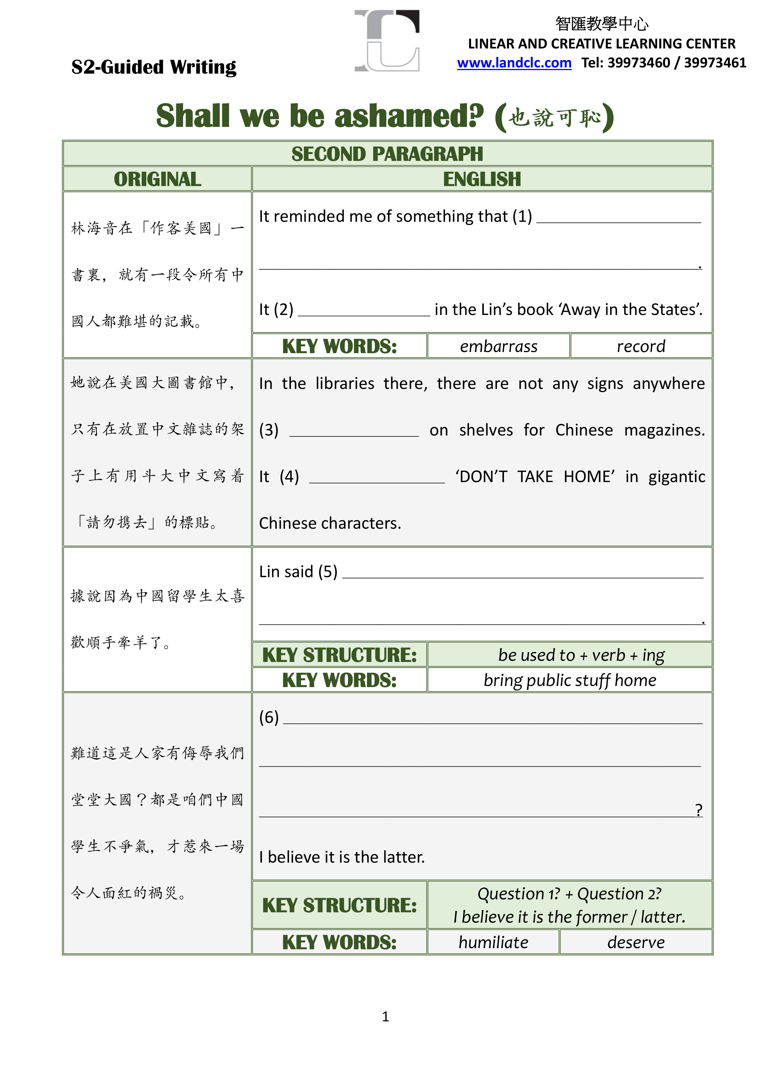 S2_Guided Writing_Shall we be ashamed (2nd & 3rd Paragraph)