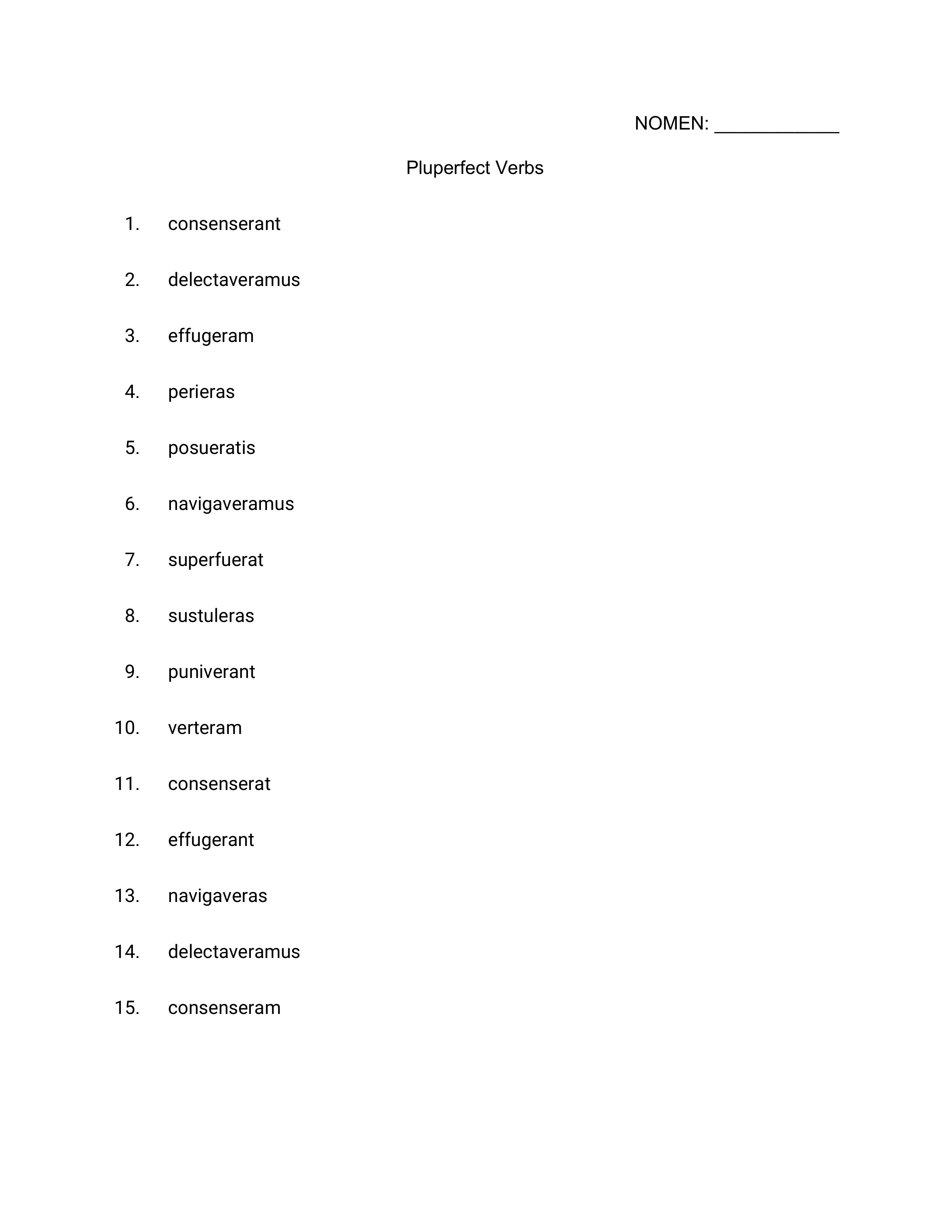 Stage 16: Pluperfect Verb Practice
