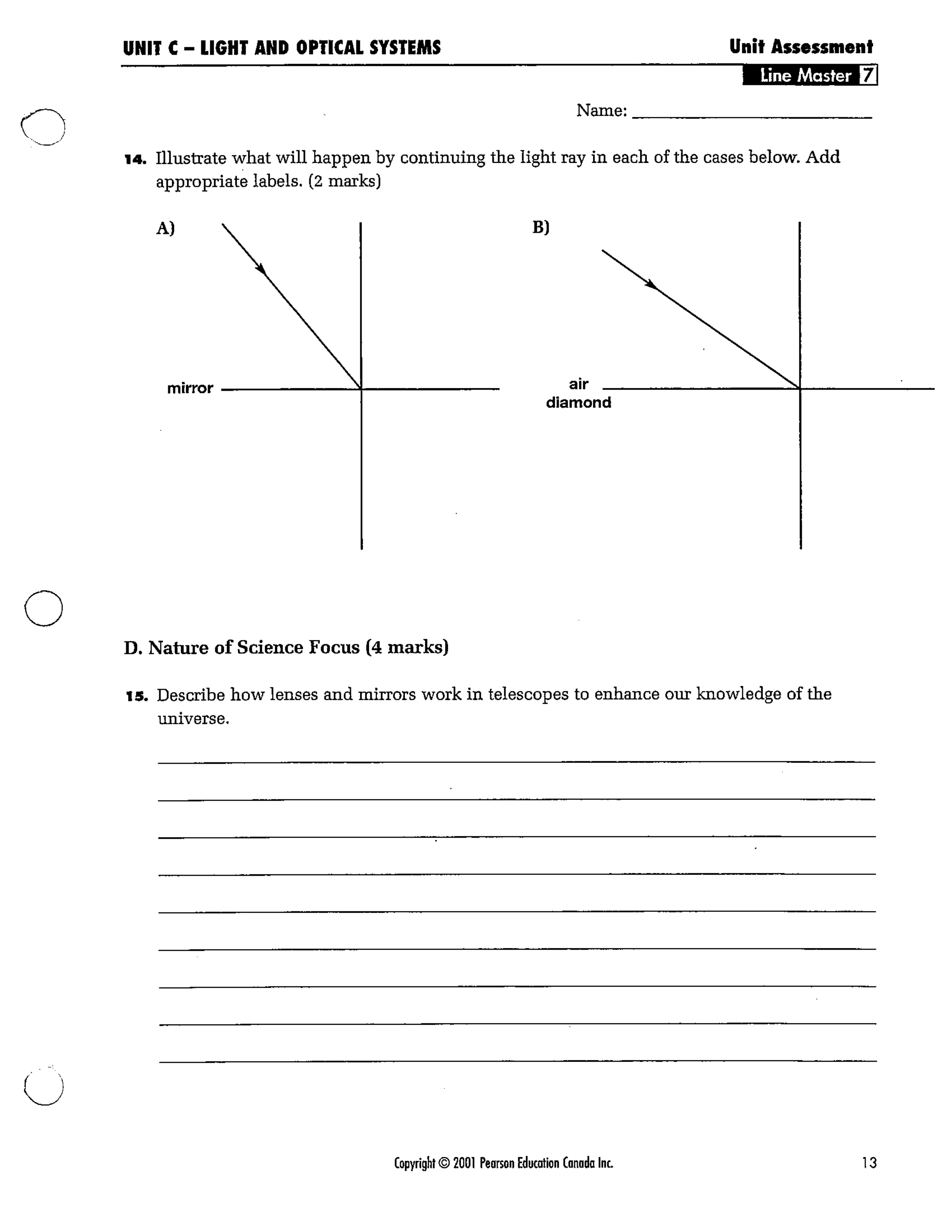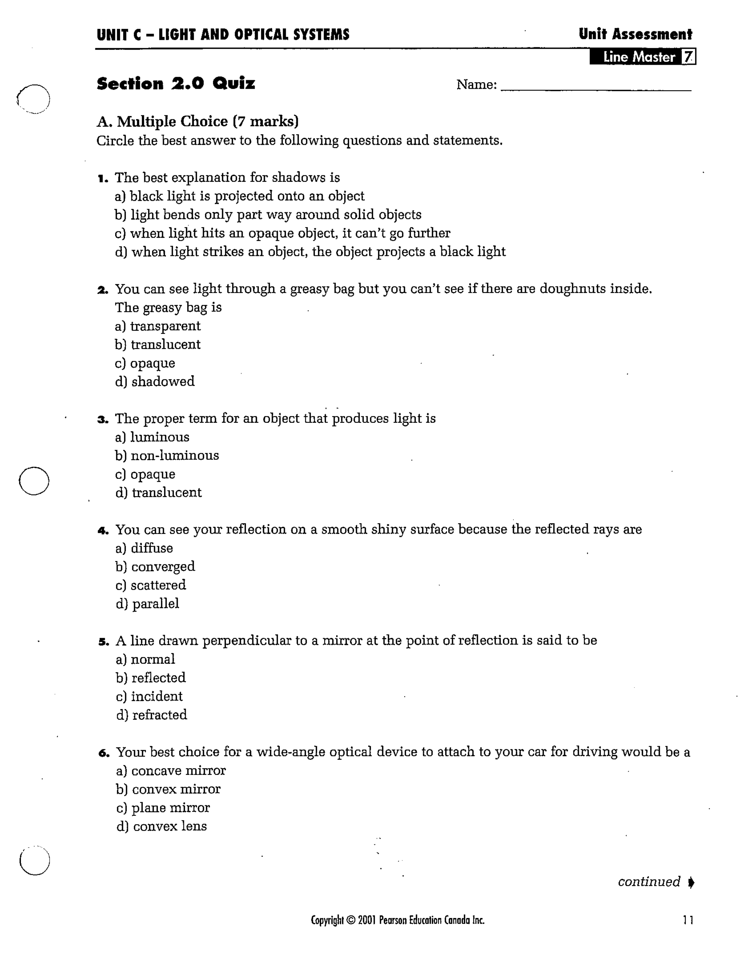 Science 8-2: Unit C: Light and Optics Section 2.0 Assignment