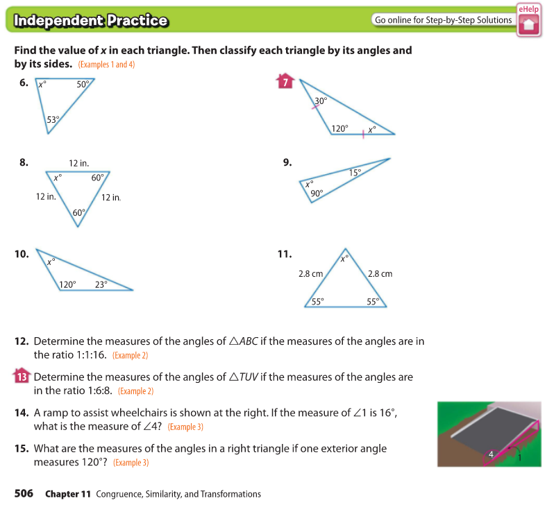 Write the angle measures in order of the angle. For example, 45, 45, 90