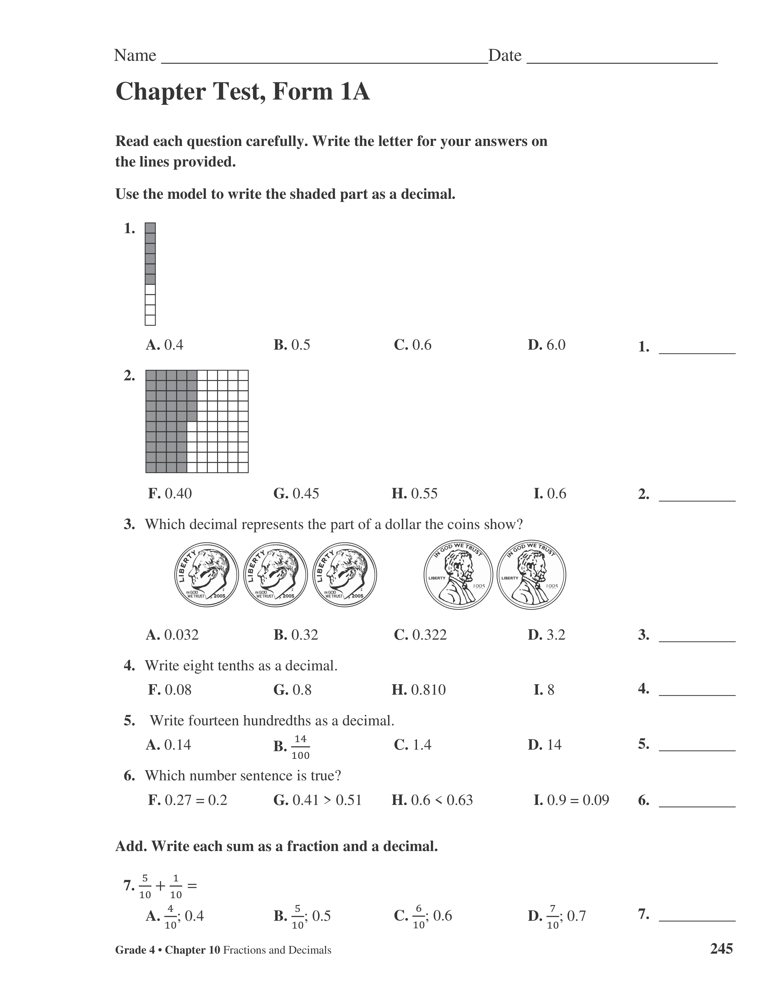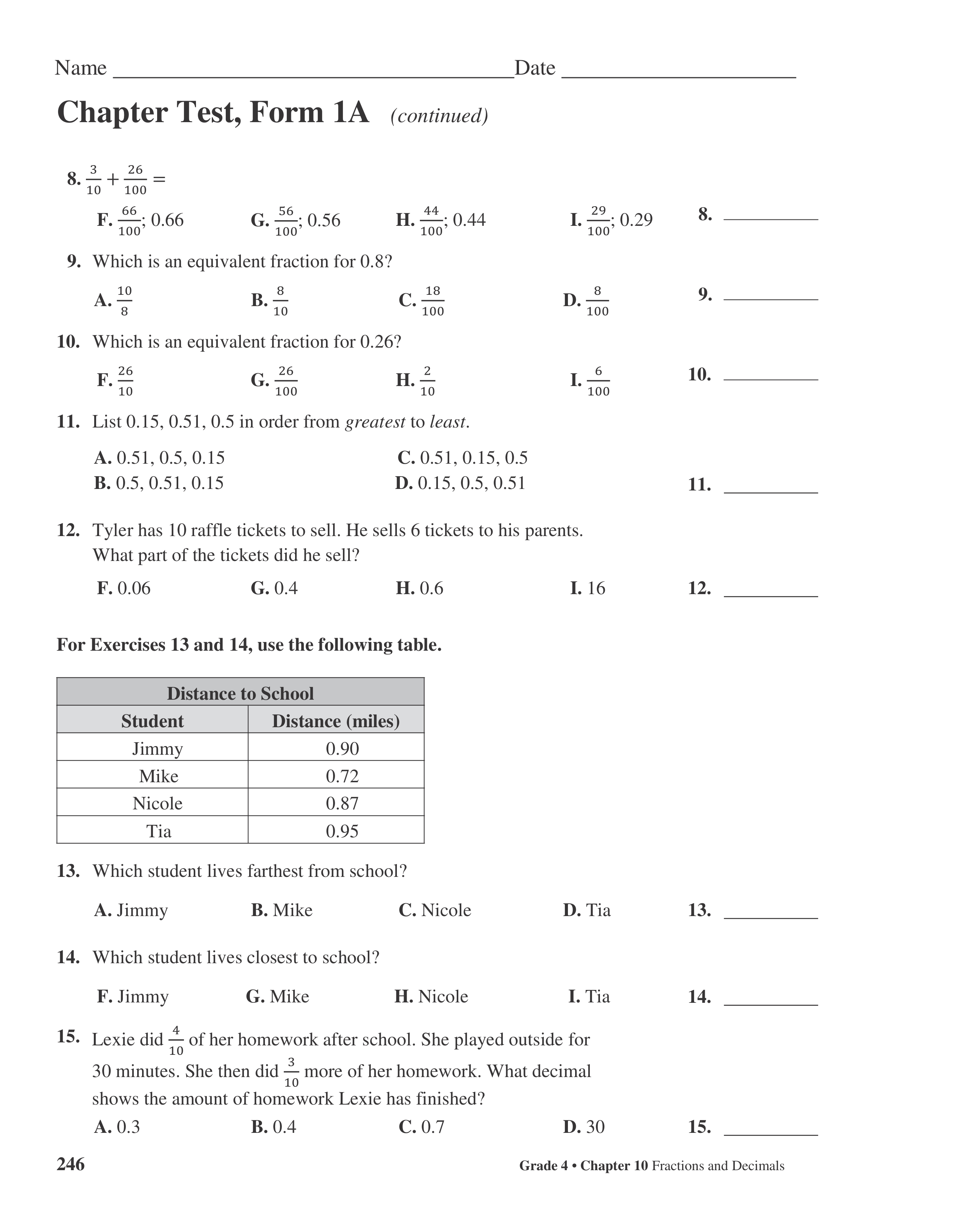 My Math Chapter 10 Test