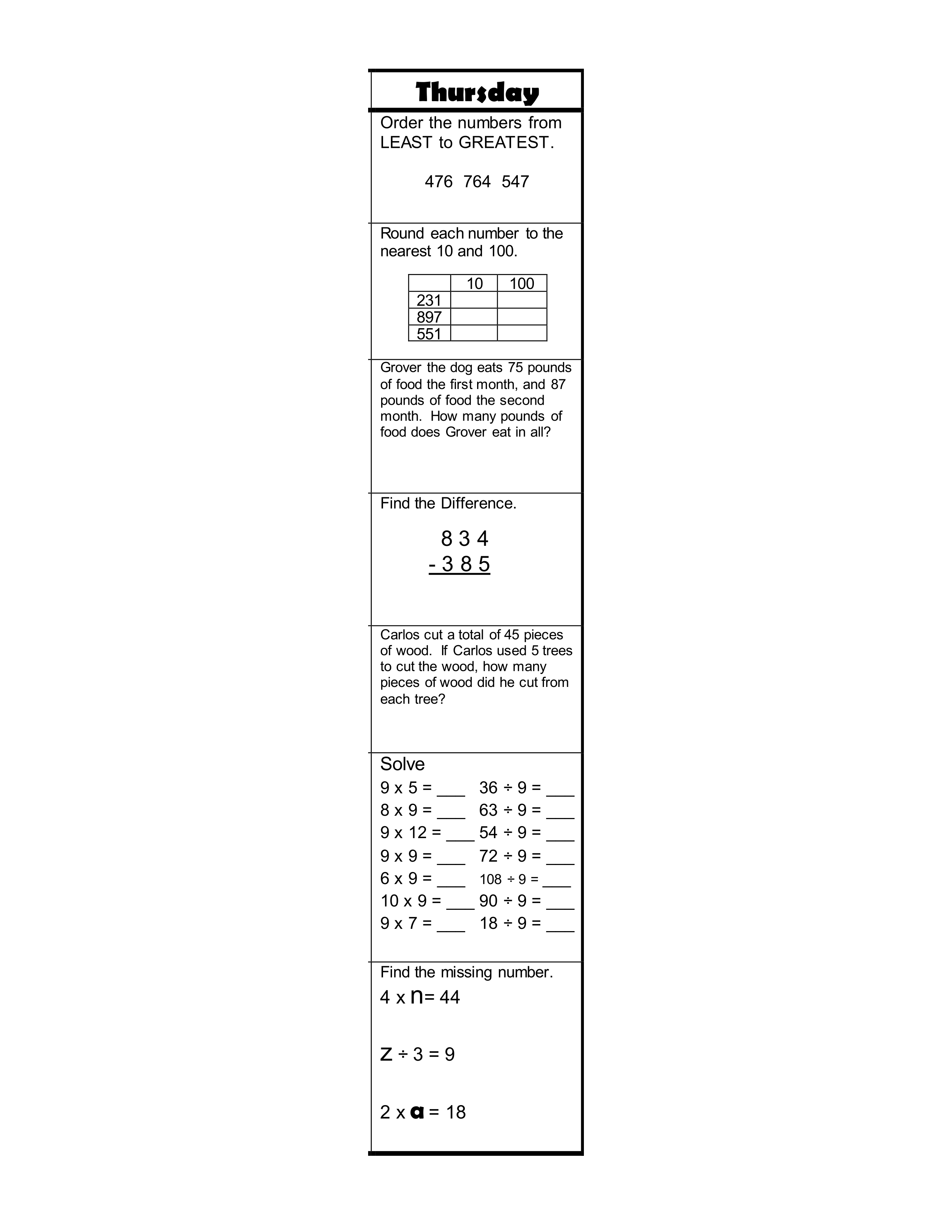 1-8 Thursday Math MW