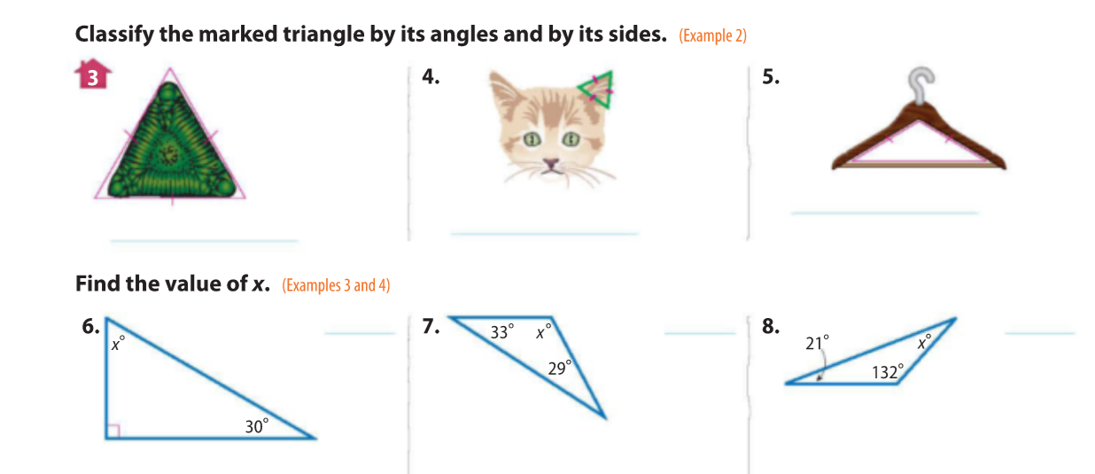 Classify the triangle by its angles, then by its sides. Example: right scalene