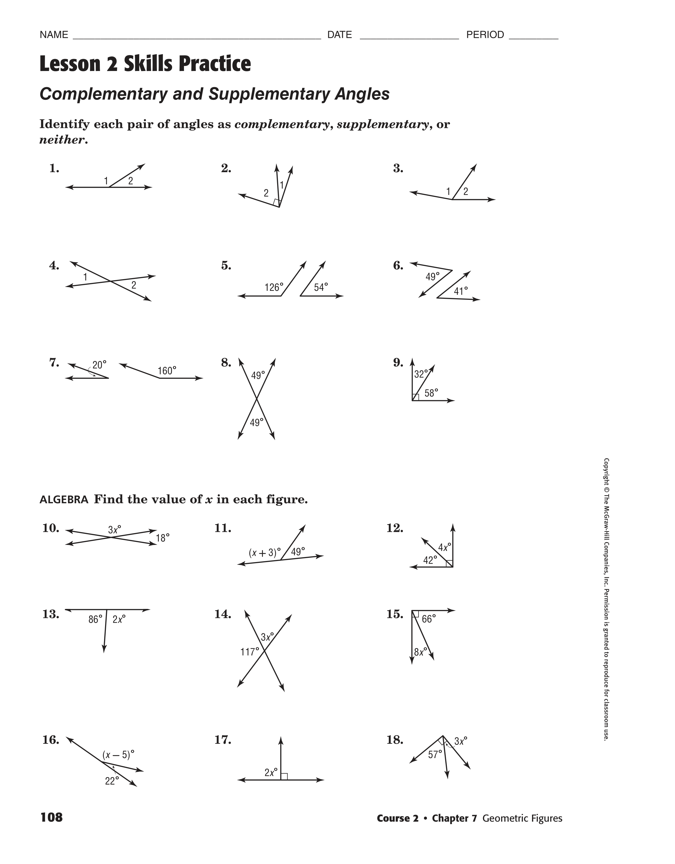 Identify each pair of angles as complementary, supplementary, or vertical.