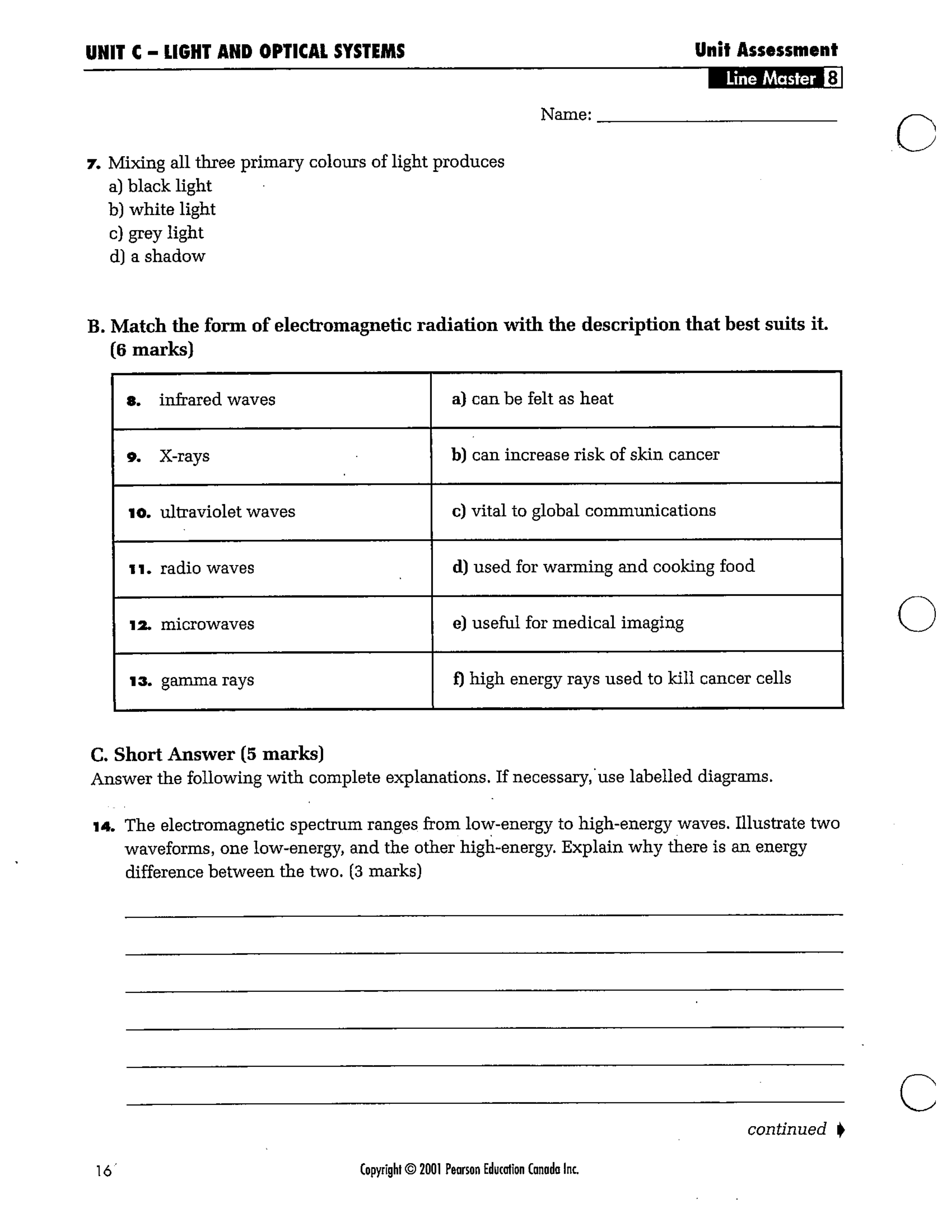 Science 8-2: Unit C: Light and Optics Section 3 Questions