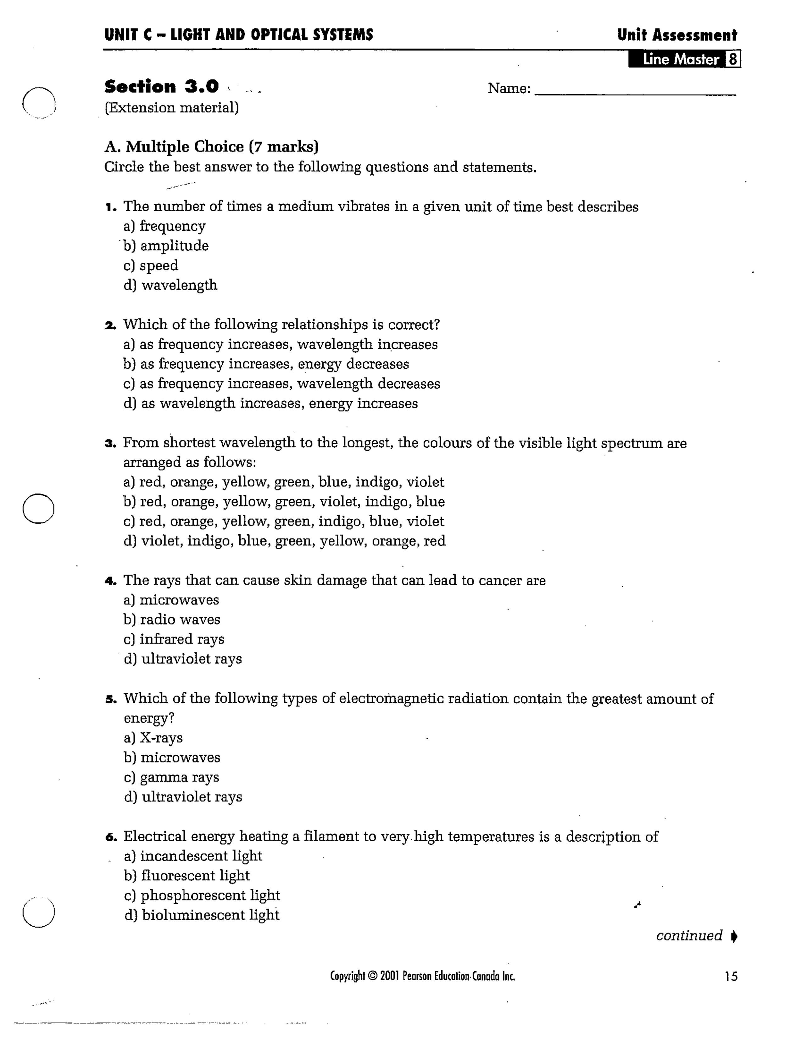 Science 8-1: Unit C: Light and Optics Section 3 Question