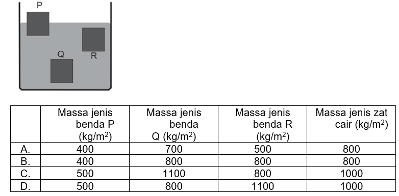 Berdasarkan balok seperti pada gambar dapat terjadi bila massa jenis benda dan