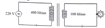 Jika transformator pada gambar merupakan transformator ideal, besar tegangan listrik yang terjadi pada lampu adalah….