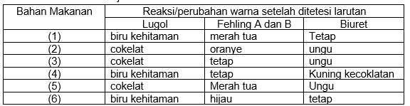 Dari data di atas dapat disimpulkan bahwa bahan makanan yang memiliki kandungan amilum paling tinggi adalah ....