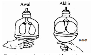Jika diumpamakan balon dalam tabung sebagai paru-paru, dan karet sebagai diafragma, maka kesimpulan dari percoban ini adalah paru-paru mengembang karena ....