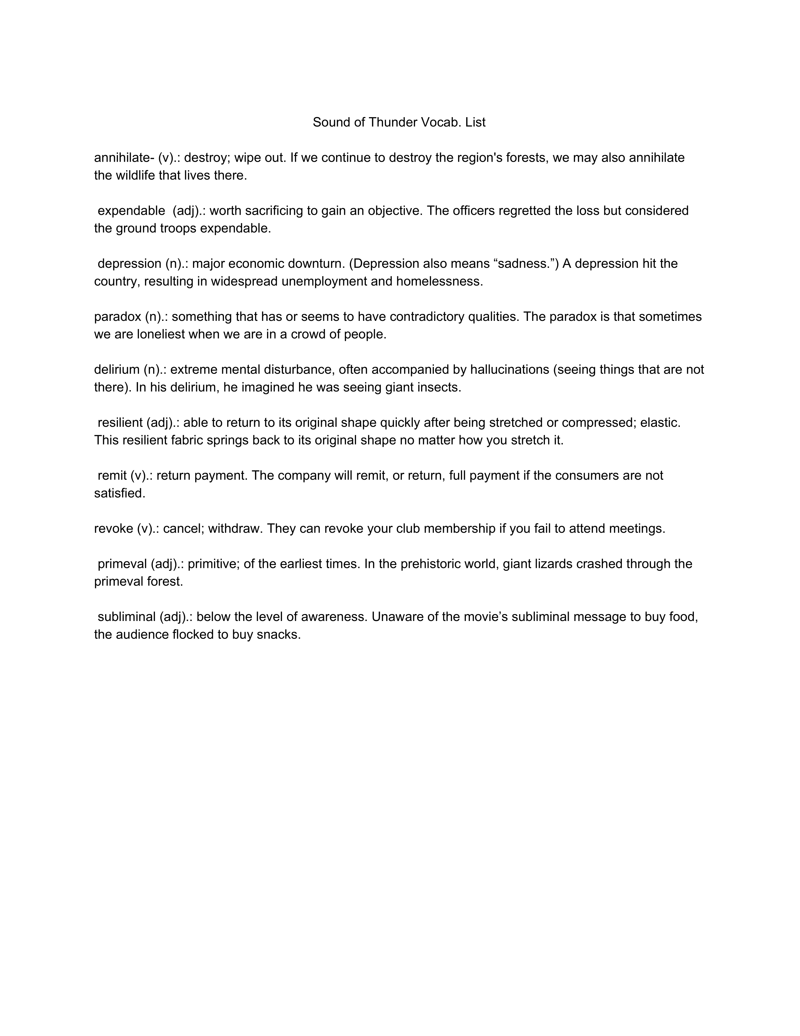 Vocab Practice 1 with Sound of Thunder Vocabulary