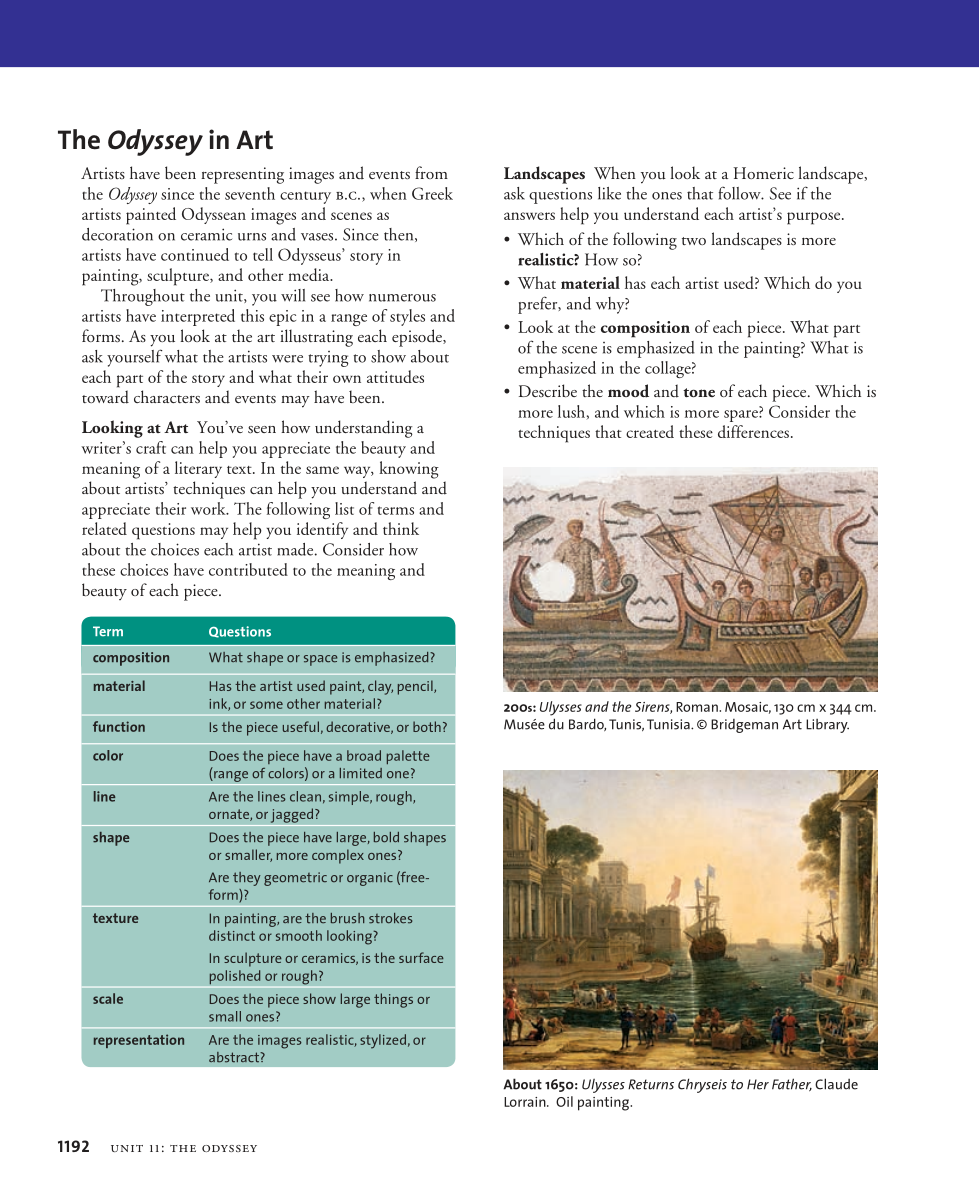 Homer's Odyssey continues to inspite modern art.