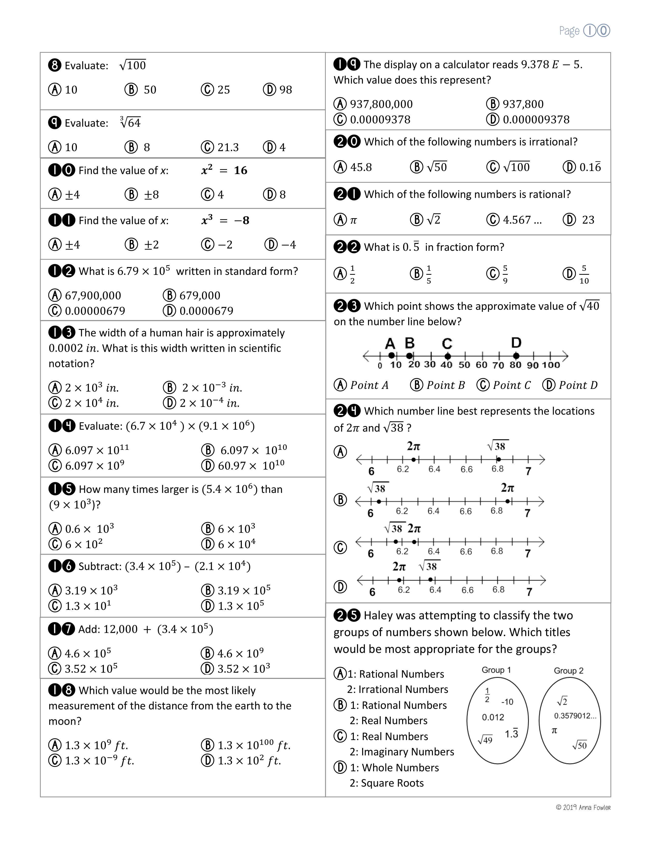 Exponents, Radicals, Scientific Notation & Rational/Irrational Numbers