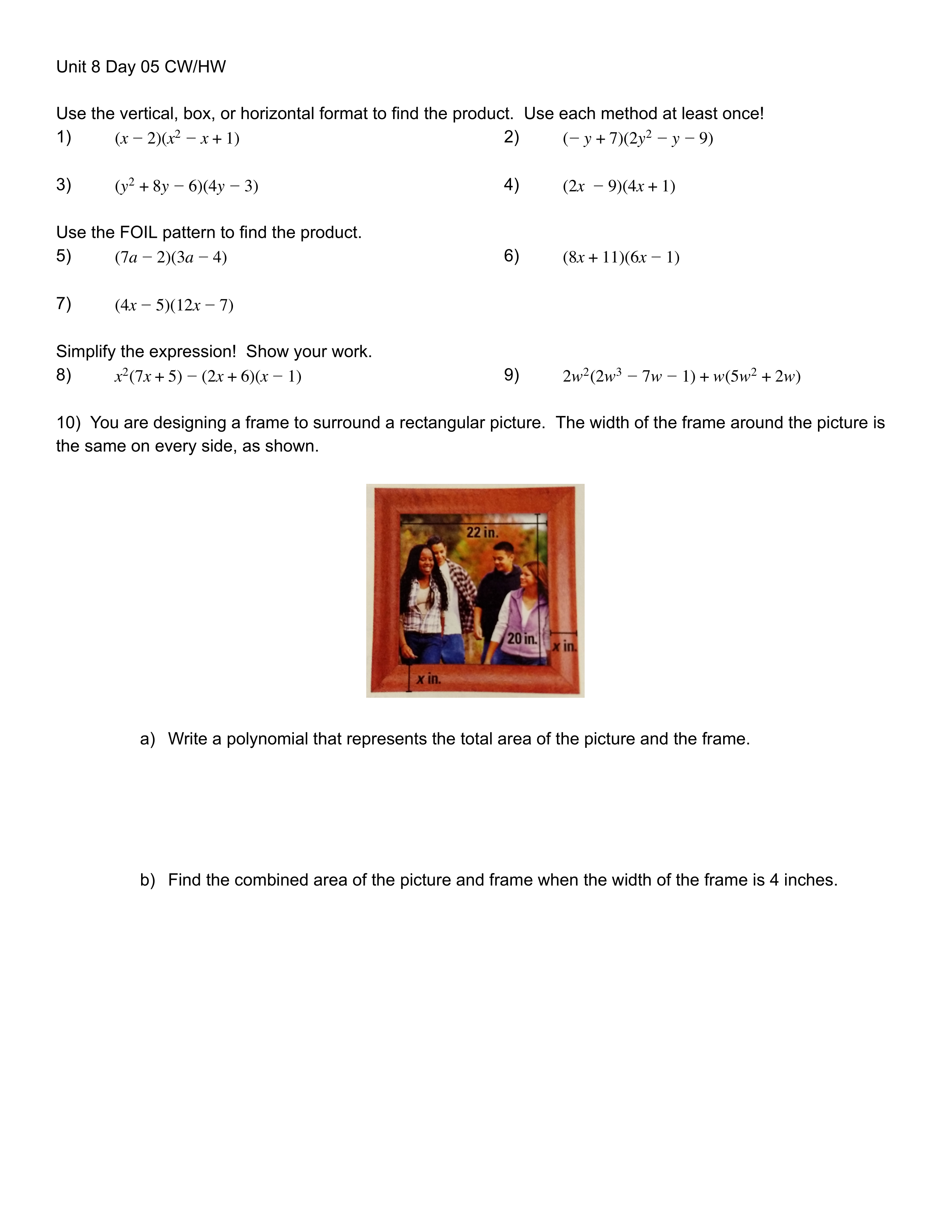 Unit 8 Lesson 02 - More Multiplying Polynomials