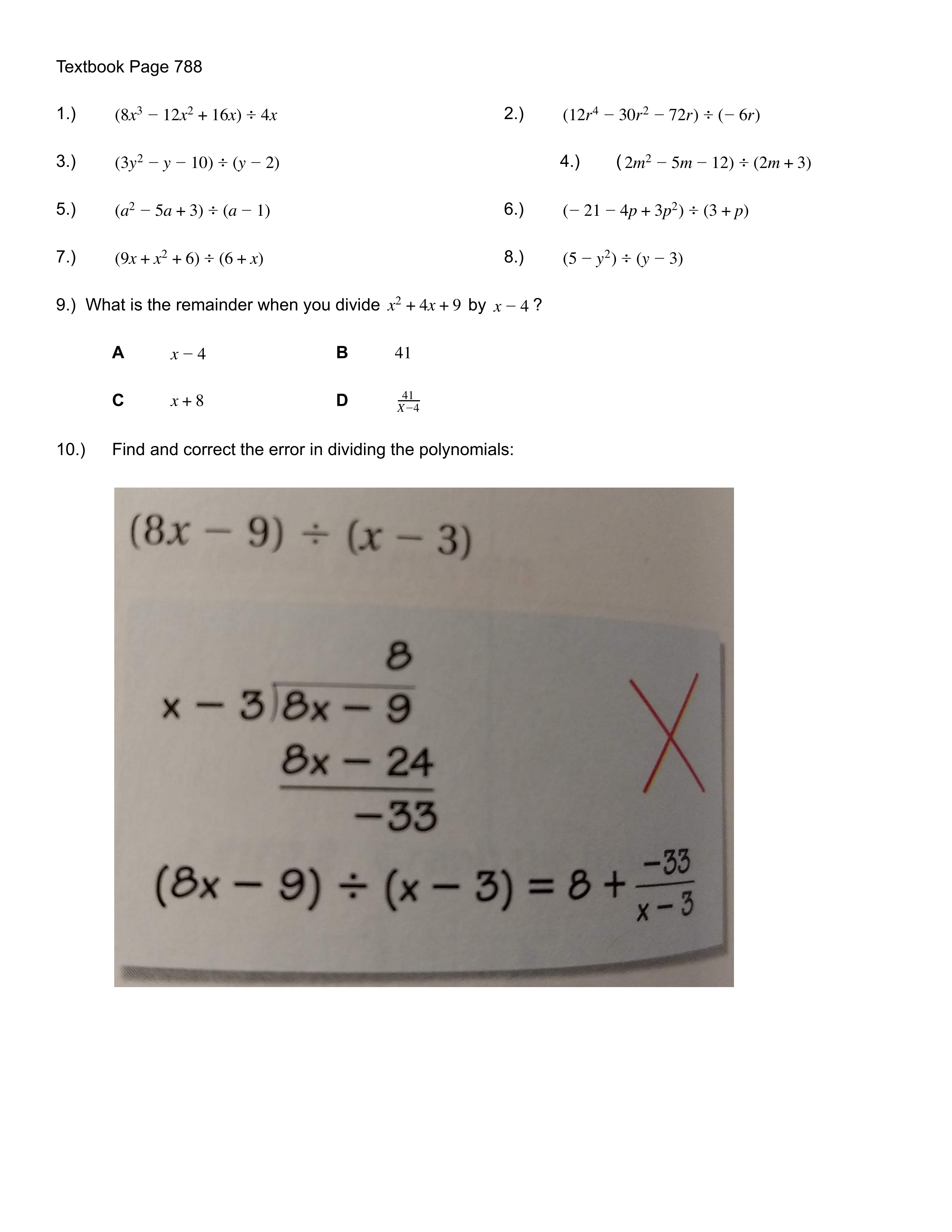 Unit 8 - Lesson 03 - Dividing Polynomials