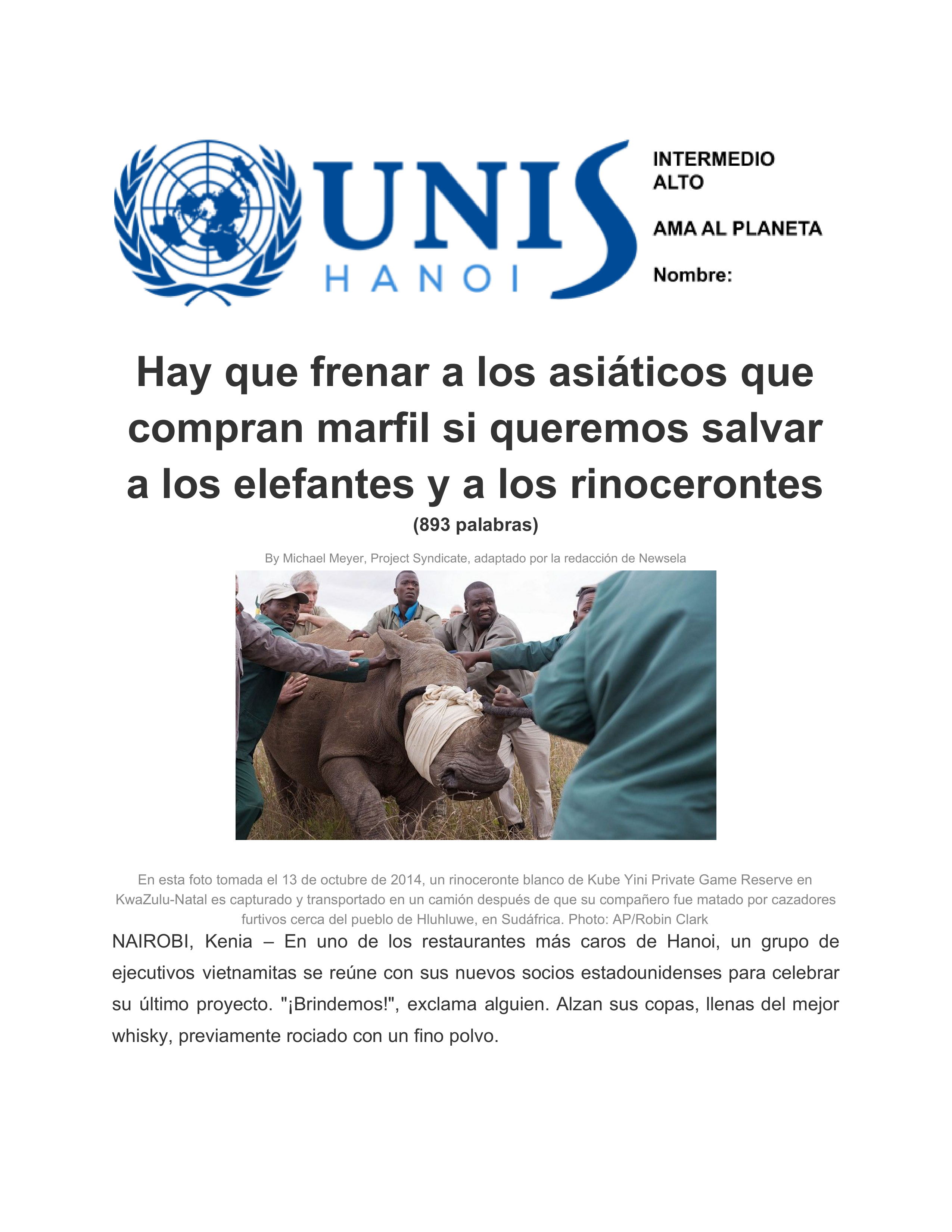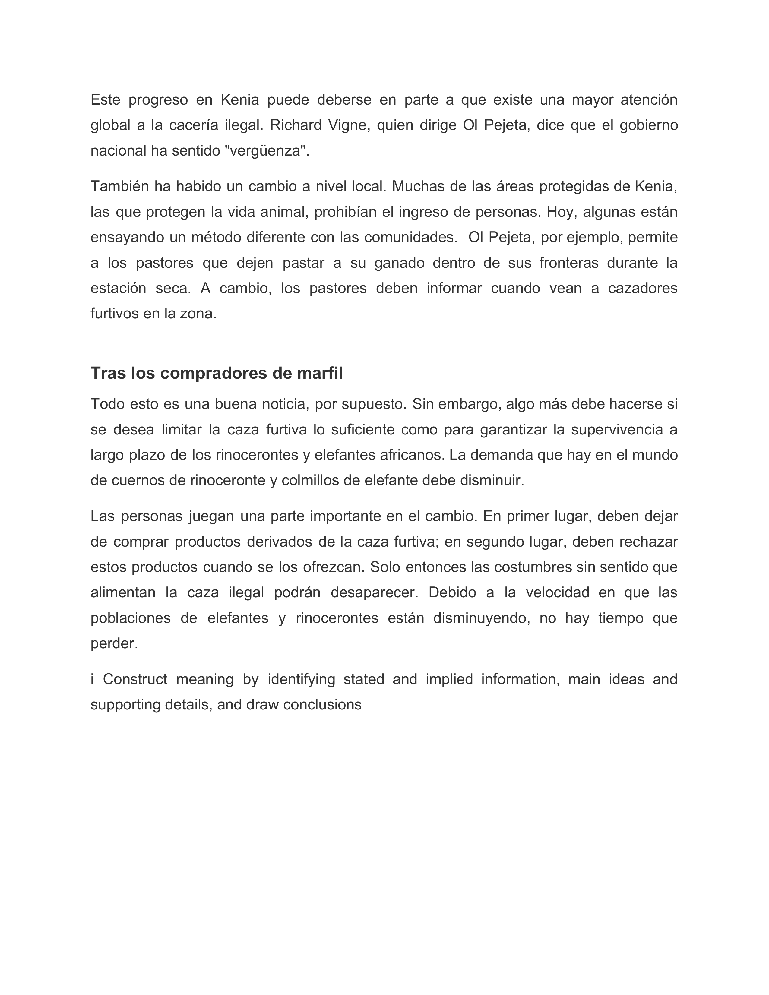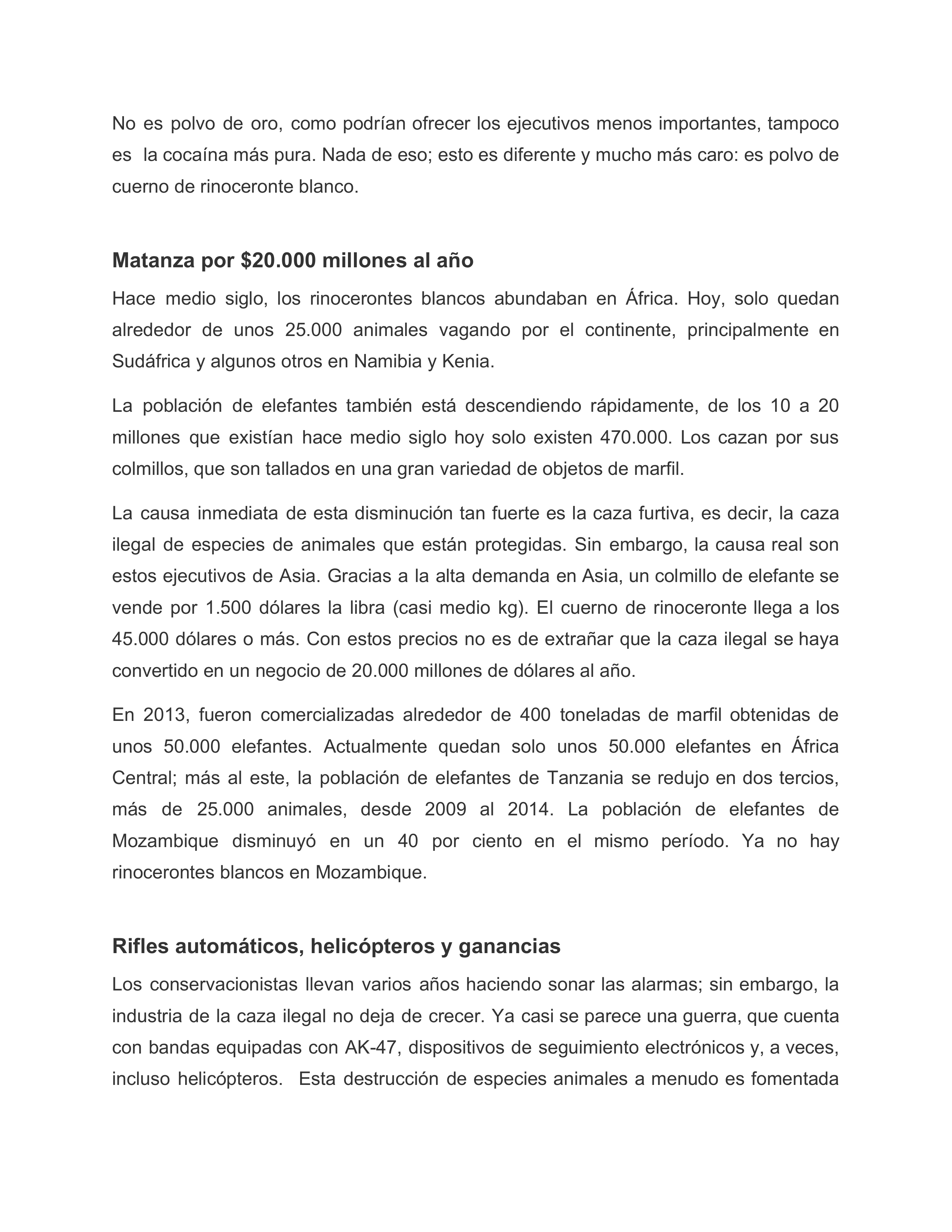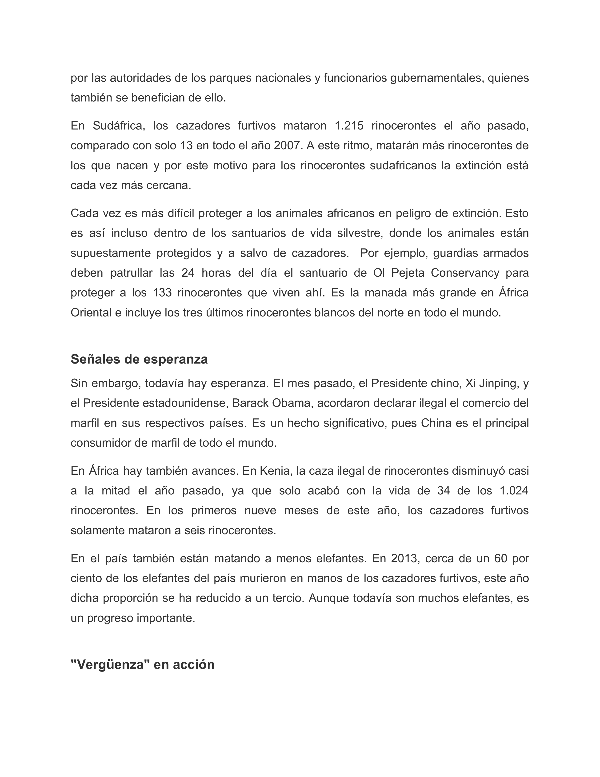 ¿En cuál de las siguientes secciones del artículo el autor explica cómo el público puede ayudar a detener la matanza de animales africanos en extinción? 1punto