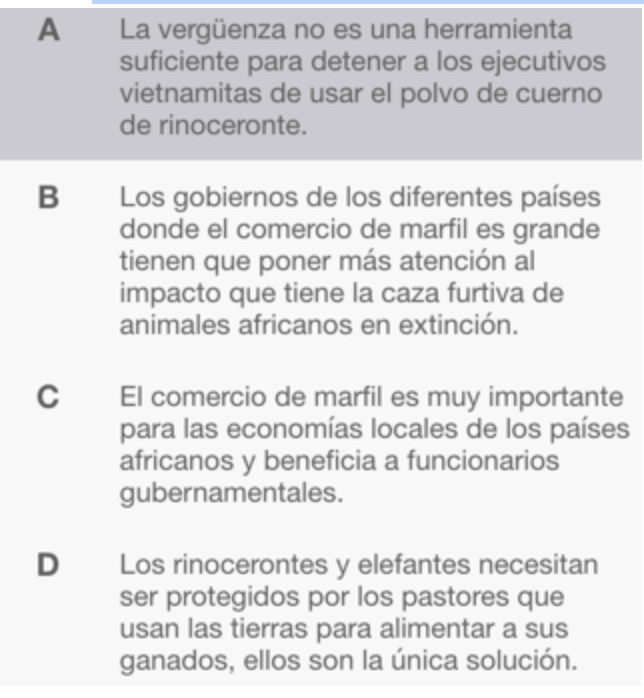 ¿Cuál es la razón PRINCIPAL por la cual la matanza de animales africanos en extinción ha aumentado? 2 puntos