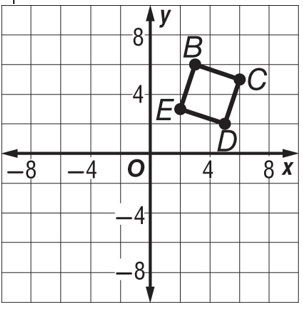 Using the square you graphed in the section above, what are the coordinates of quadrilateralBʹCʹDʹE' after the counterclockwise rotation of 180° about the origin?