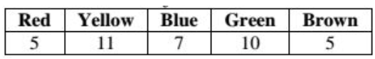 The chart below represents the number of marbles in a jar. What is the probability of picking green?