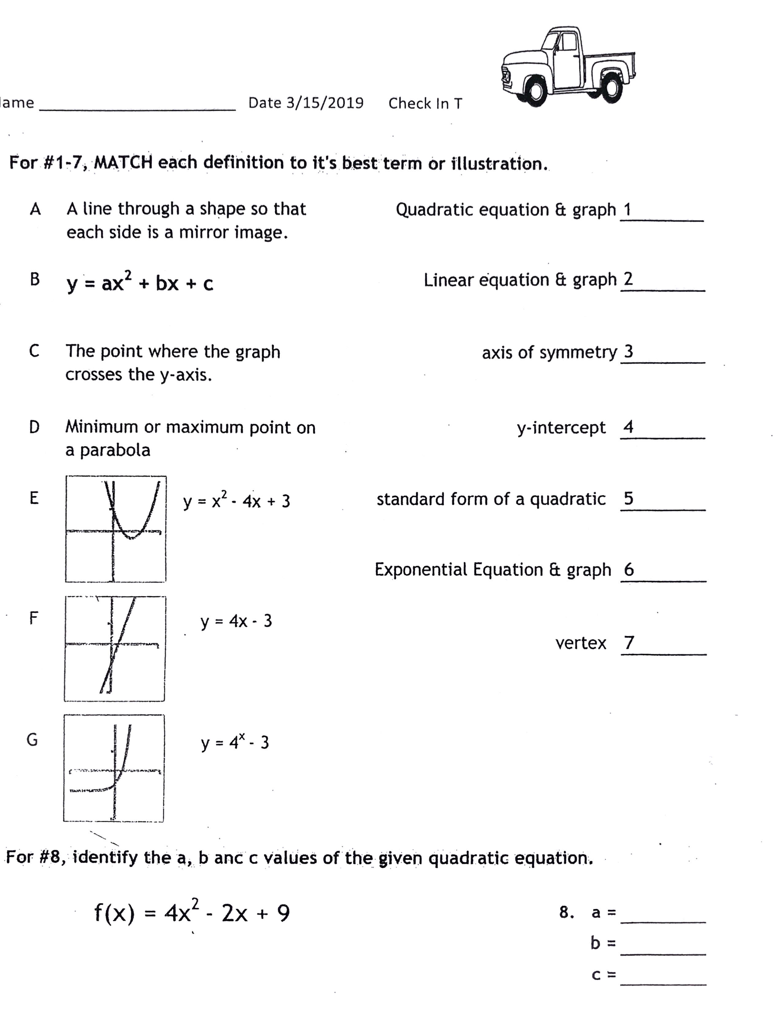 Which a,b and c match the quadratic given?