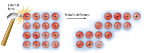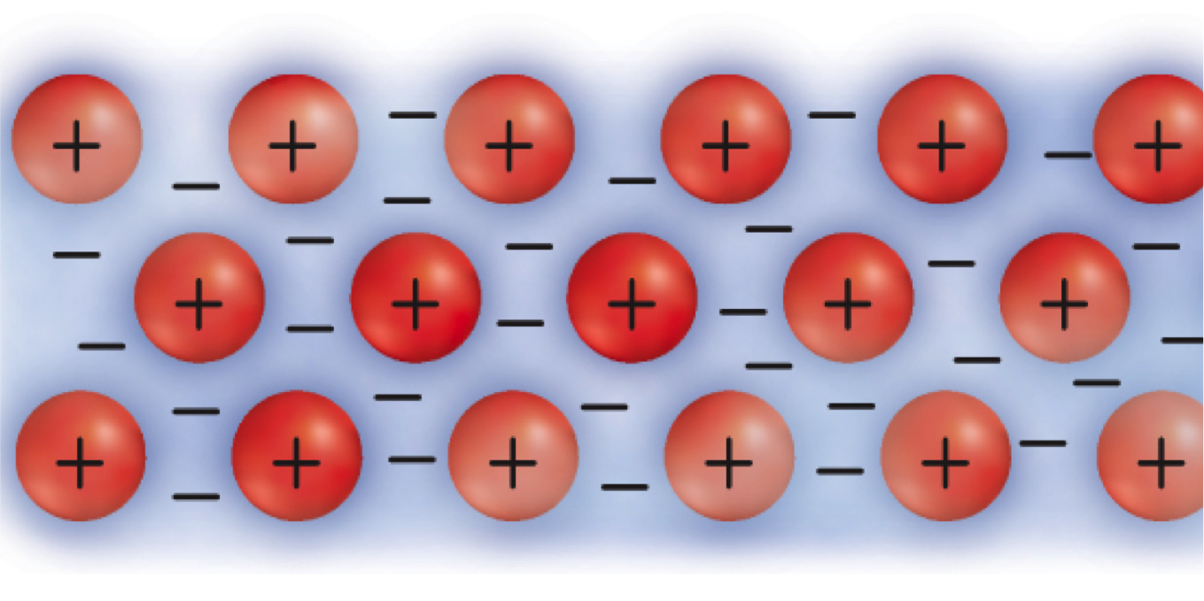 The key to the characteristics of metals is the "sea of electrons" that flows around the nuclei of the atoms.