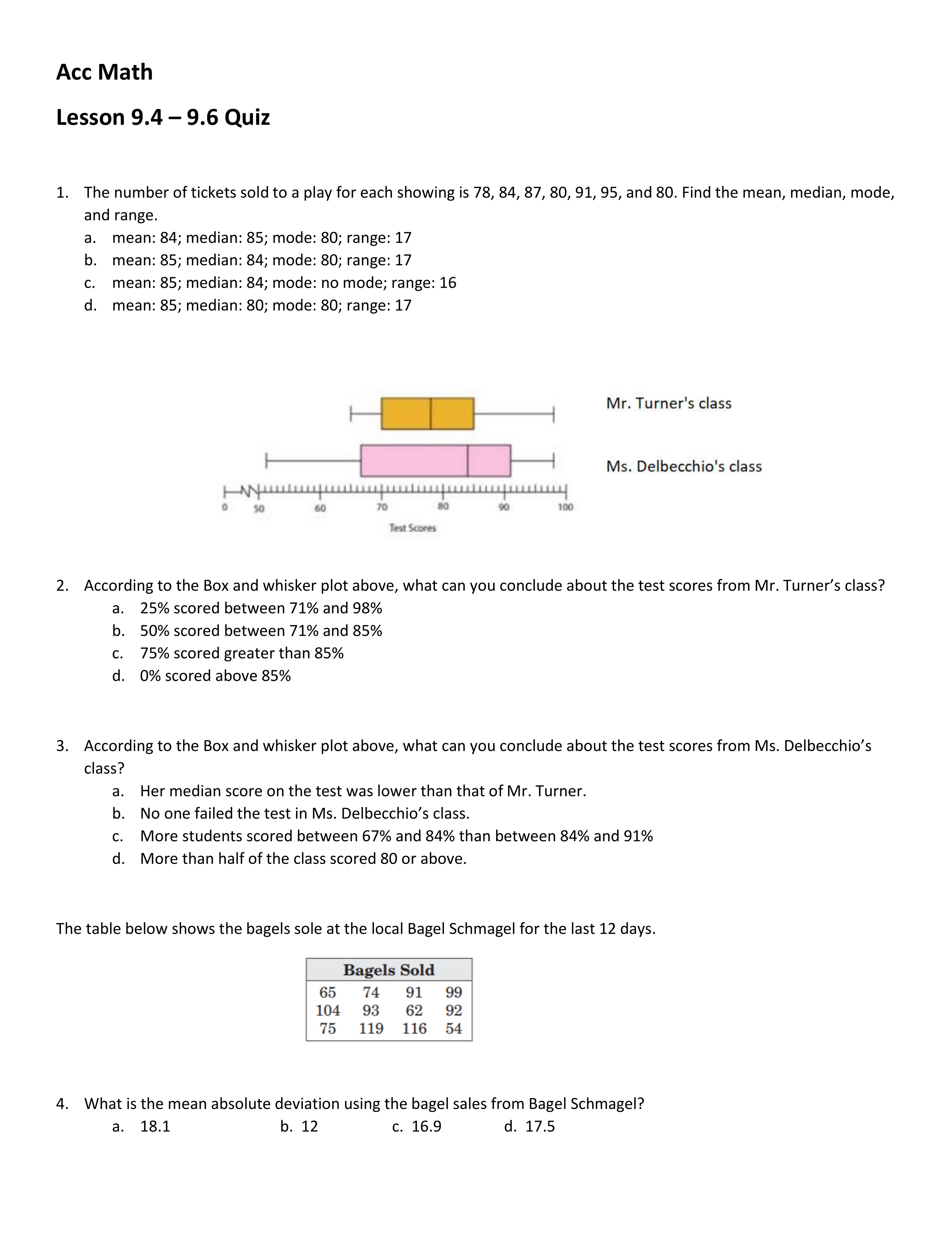 Acc Math, Linear Models Quiz B cloned 3/17/2020