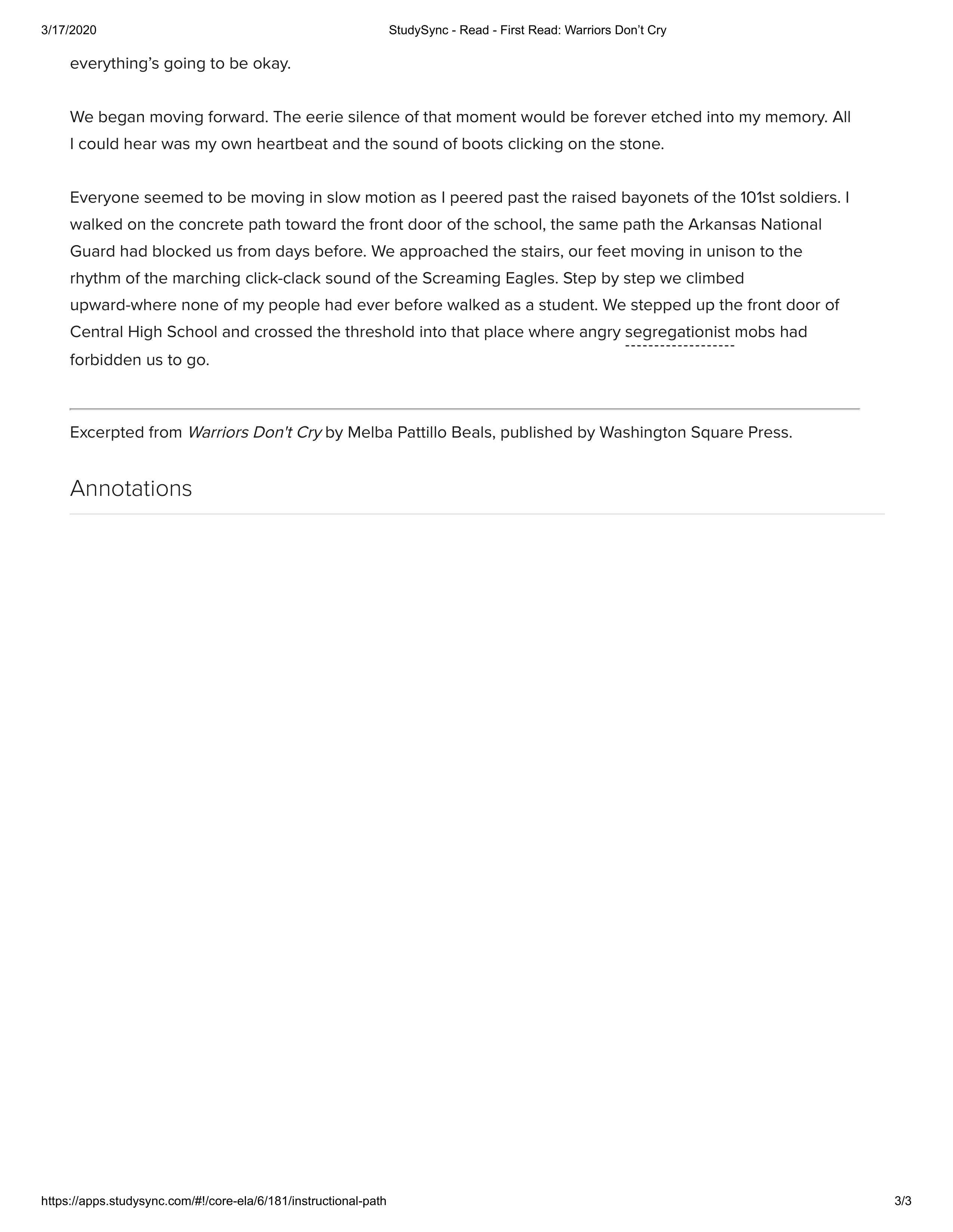 Sarge, our driver, was friendly and pleasant. He had a Southern accent, different from ours, different even from the one Arkansas whites had. We rolled away from the curb lined with people waving at us. Mama looked even more distraught. I remembered I hadn’t kissed her good-bye.