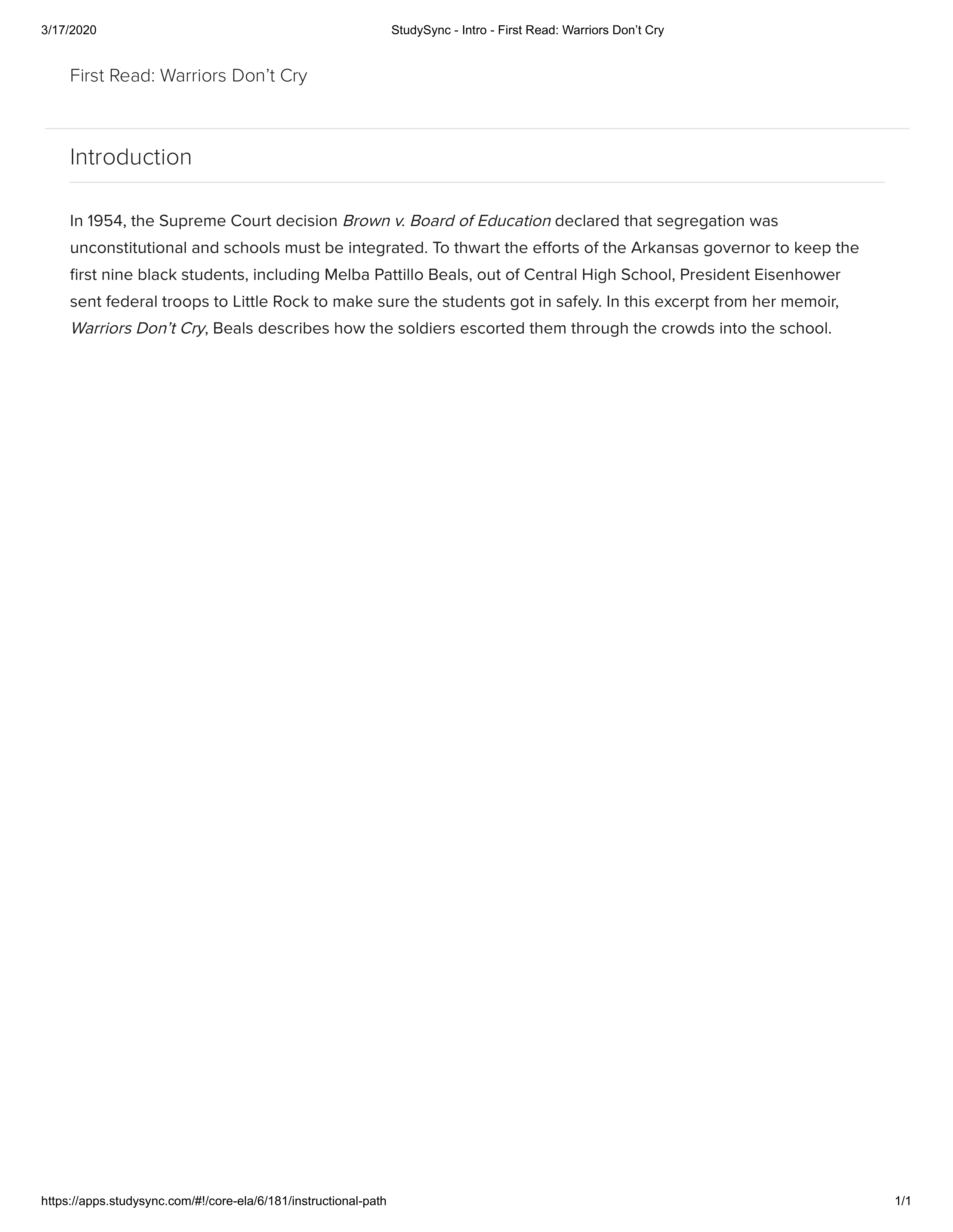 We were already a half hour late for school when we heard the order “Move out” and the leader motioned us to get into the station wagon. As we collected ourselves and walked toward the caravan, many of the adults were crying openly. When I turned to wave to Mother Lois, I saw tears streaming down her cheeks. I couldn’t go back to comfort her. Sarge, our driver, was friendly and pleasant. He had a Southern accent, different from ours, different even from the one Arkansas whites had. We rolled away from the curb lined with people waving at us. Mama looked even more distraught. I remembered I hadn’t kissed her good-bye.