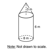 A water tank is a compound shape consisting of a cylinder and an inverted cone as shown below. The cylinder has a diameter of 8 meters and a height of 6 meters. The cone has a diameter of 8 meters and a height of 3 meters.