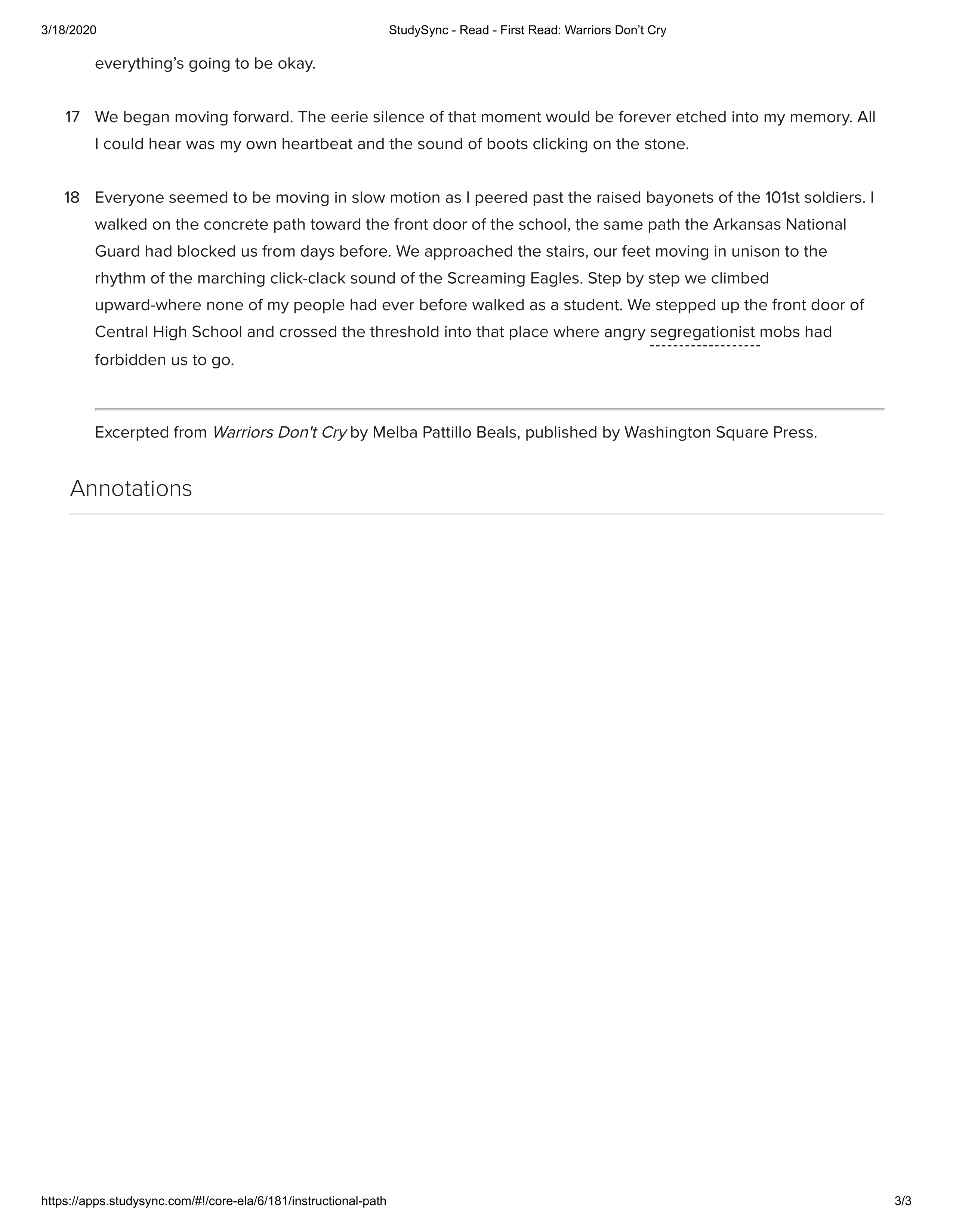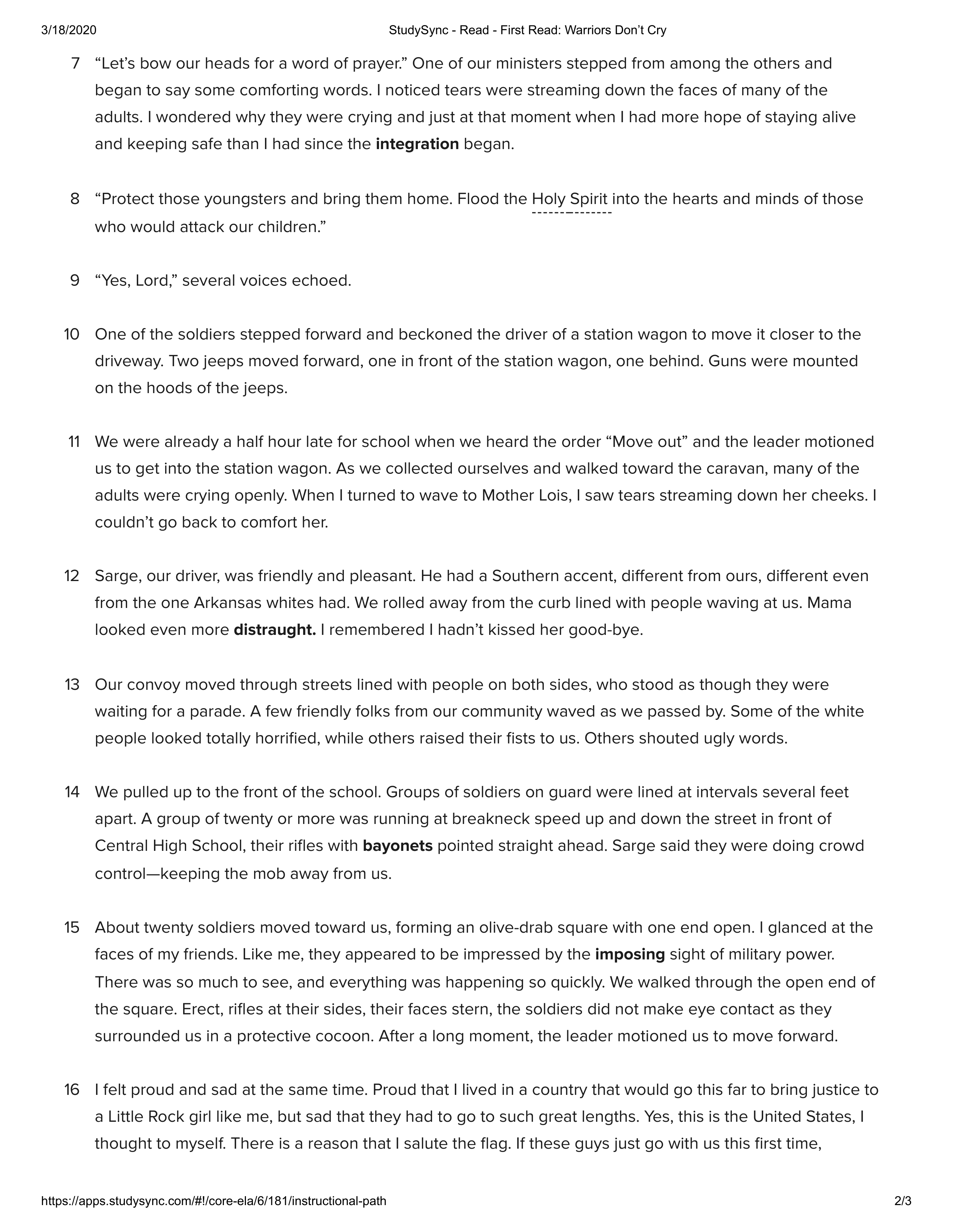 Warriors Don't Cry Vocabulary