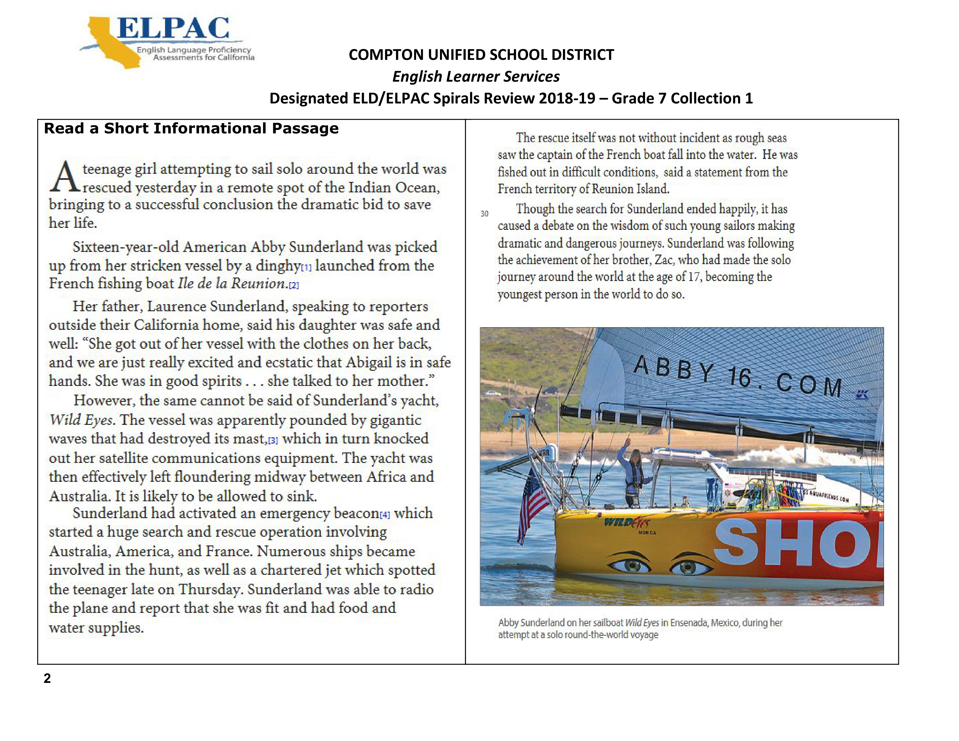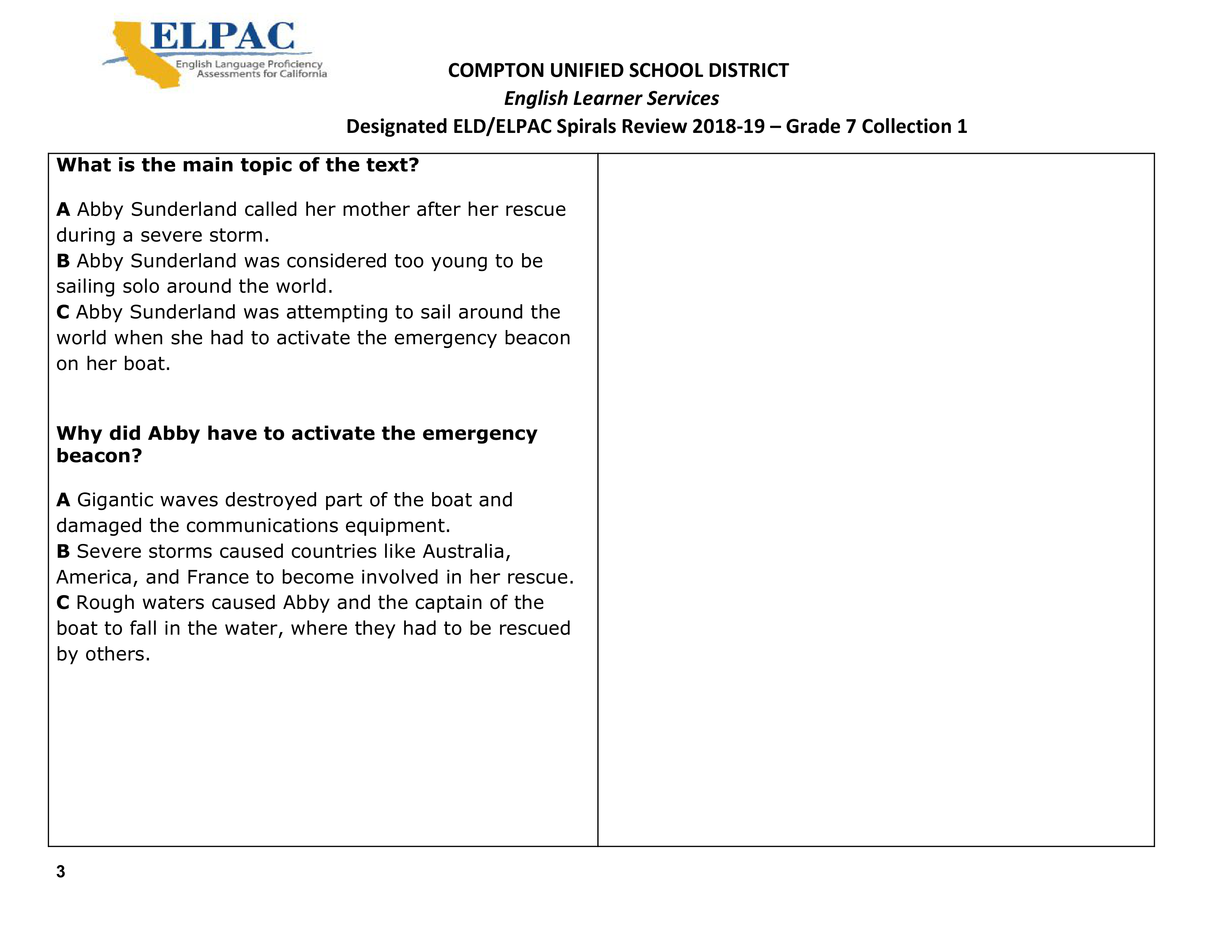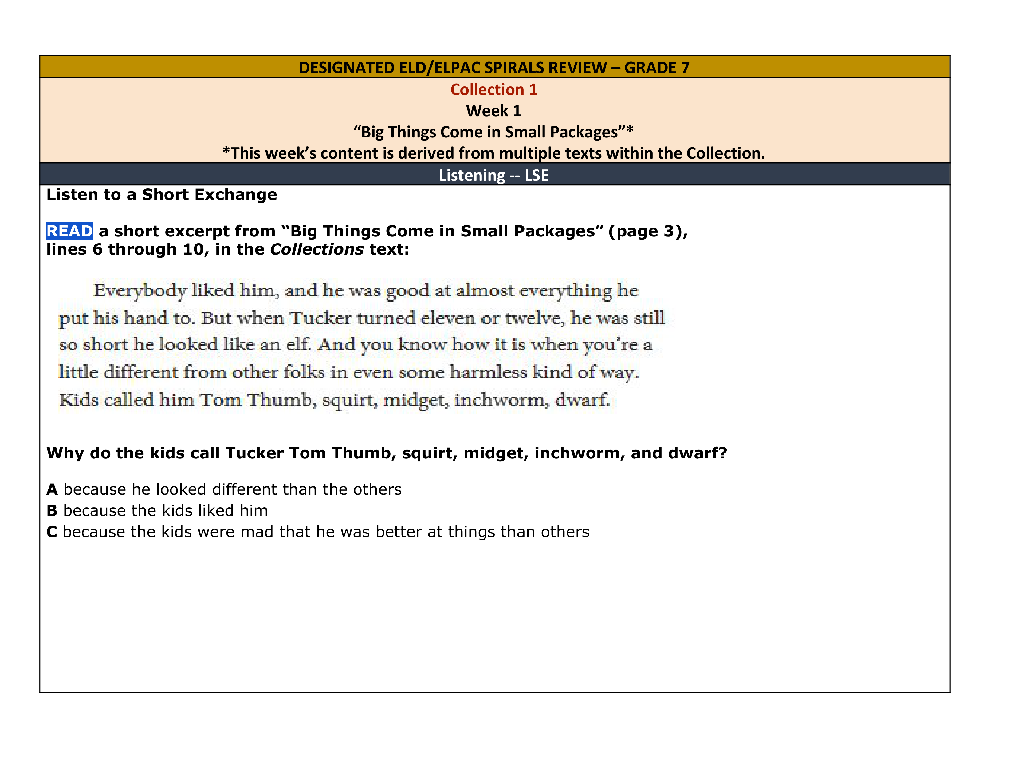 CUSD 7th Grade ELPAC Spiral Collection 1 Week 1