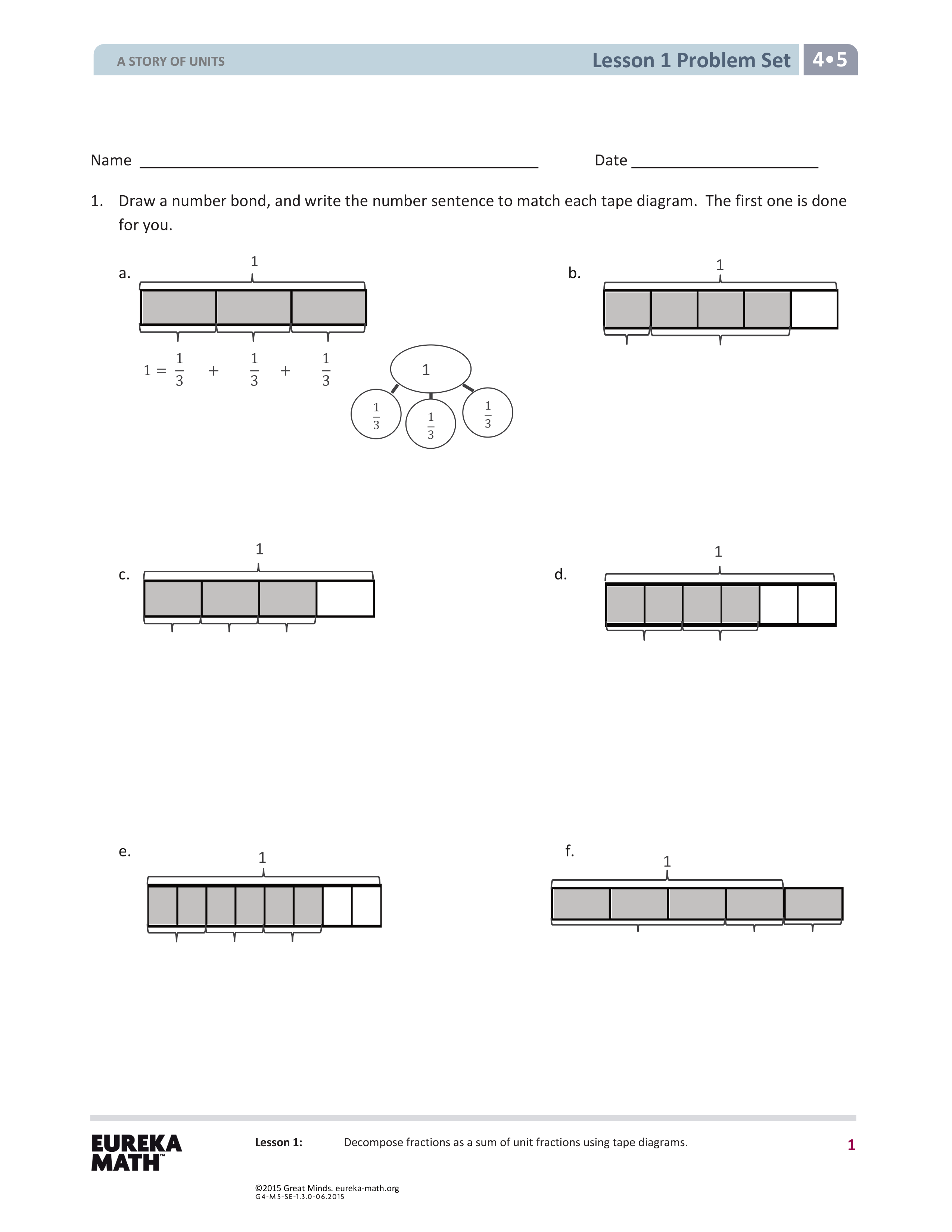What fraction do these parts represent? Put the denominator on the bottom. Notice the 1 on the top shows you how many parts are included in the denominator.