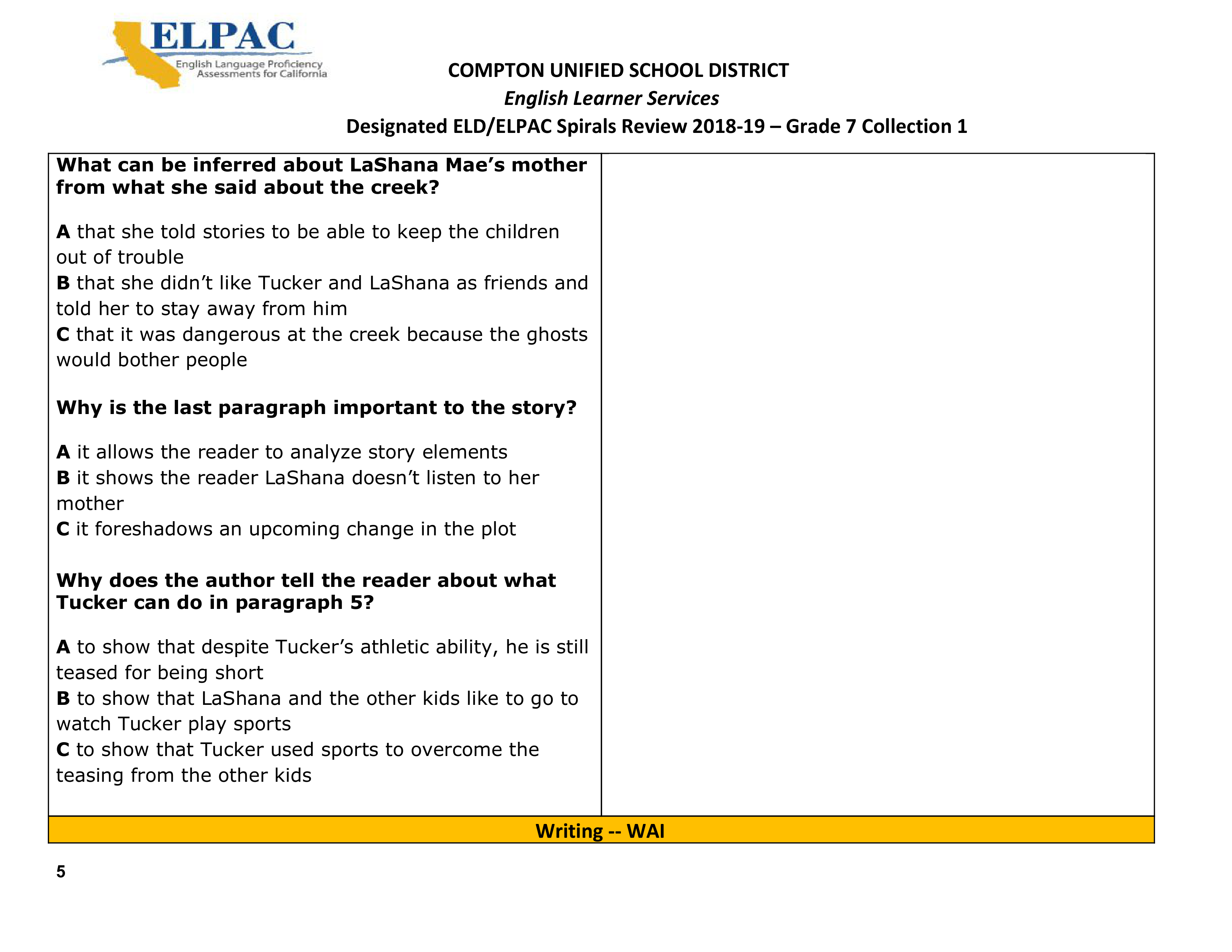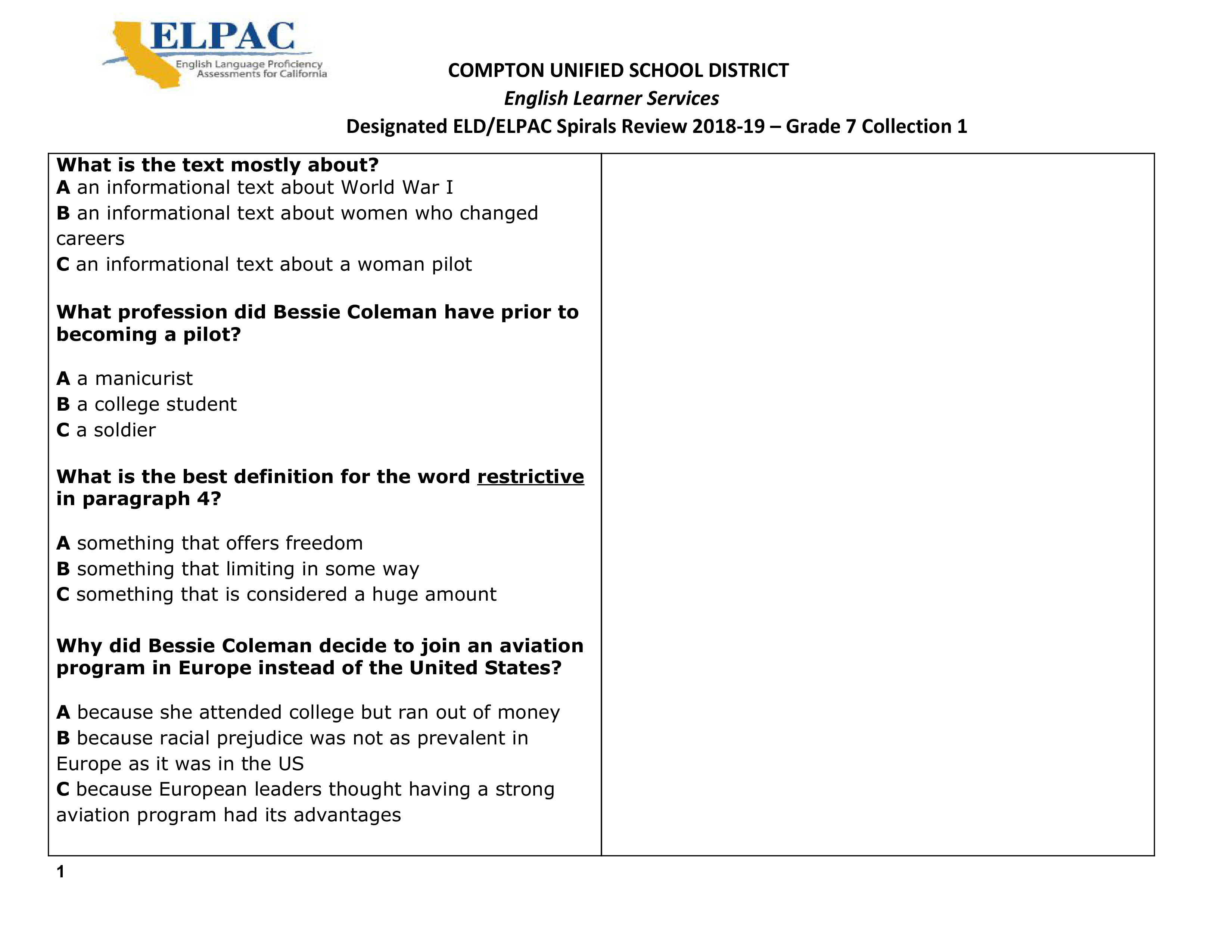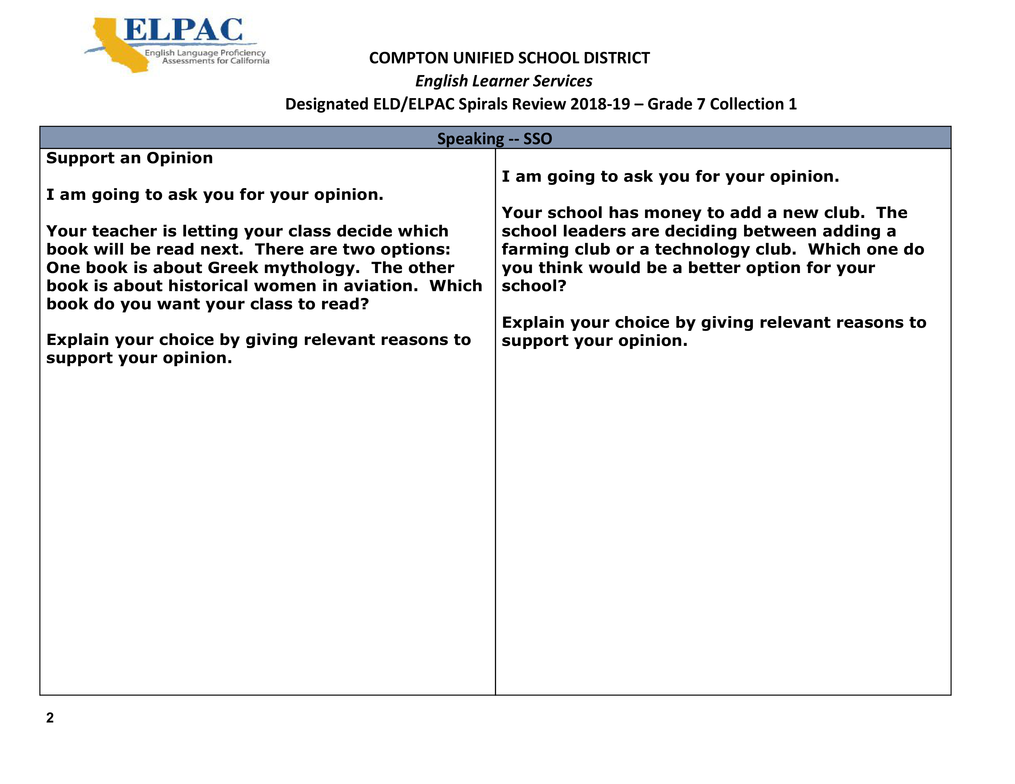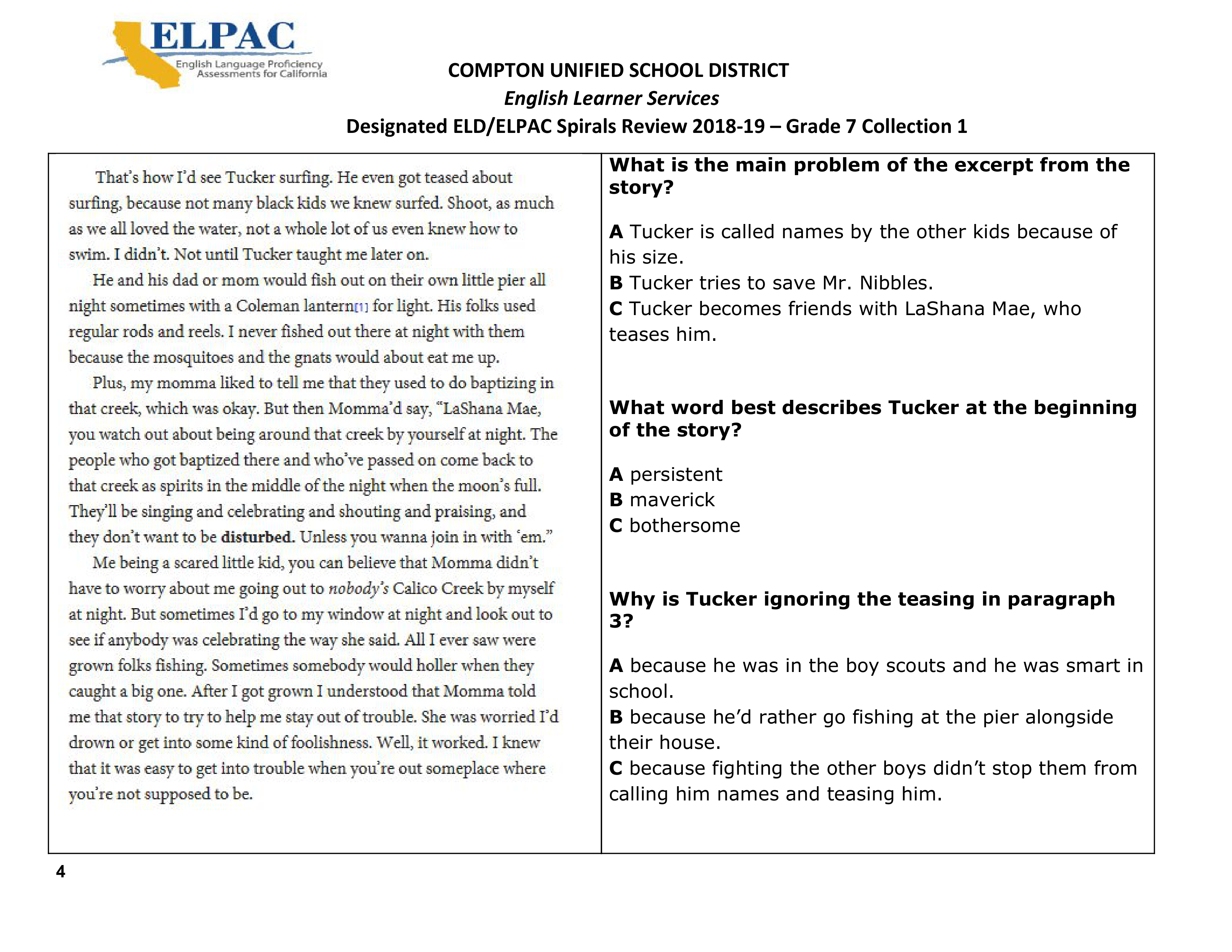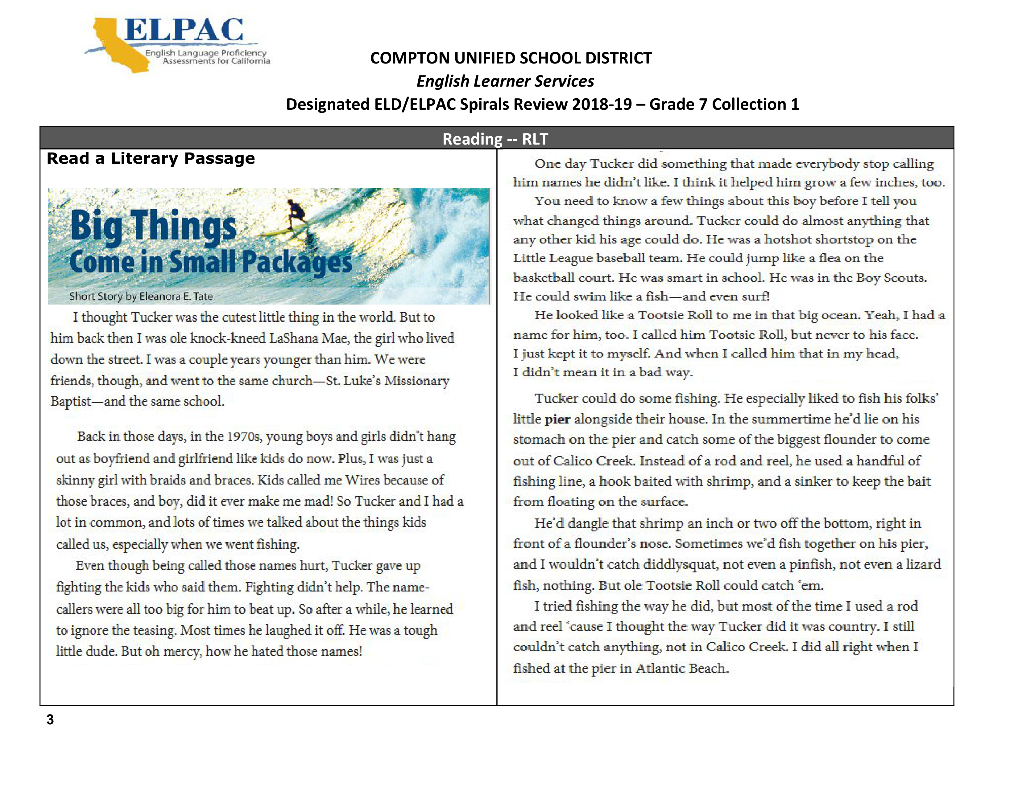 CUSD 7th Grade ELPAC Spiral Collection 1 Week 3