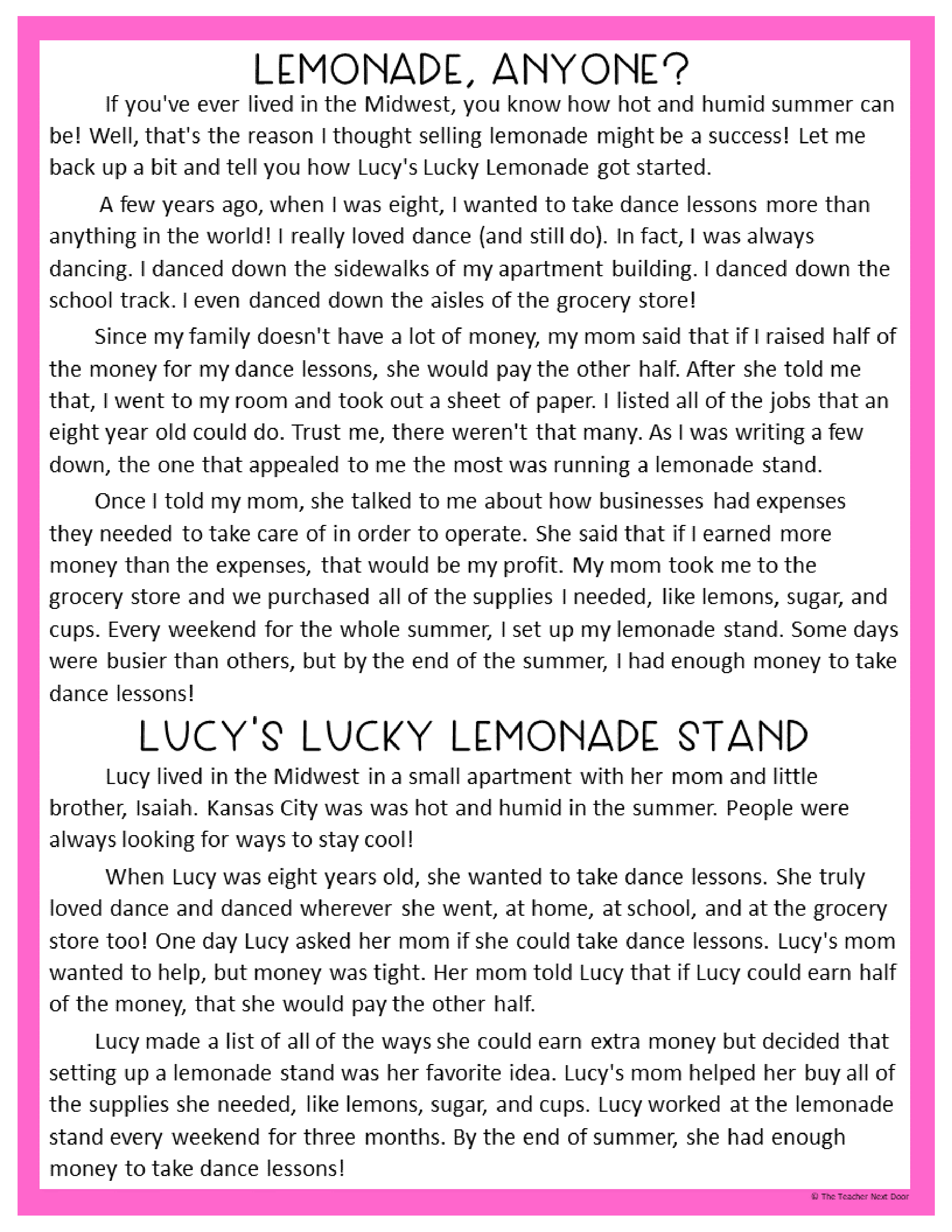 RL.4.6 Lemonade, Anyone? Point of View Quiz